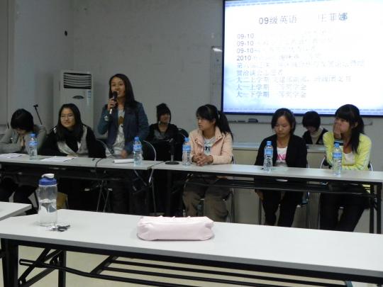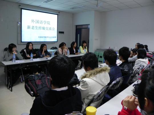 院办210成功举行。09级的优秀学生代表光临现场,为10级新生们答疑解惑,展开了学习和生活各方面的经验交流。