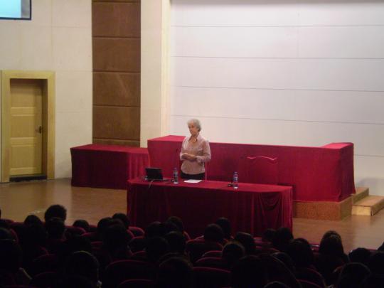 这场学术讲座旨在让更多人了解文体学,提高同学对此的认识以及兴趣。首先,Seminoe博士从理论着手,层层展开。流利地道的发音引人入胜,精彩鲜活的例子博得阵阵掌声。紧接着,博士利用一系列创意十足的广告为大家深入分析文体学。同学们从简单明了的讲解中,认识了文体学的基础内容。同时,异国文化的呈现也让大家体会到文体学和英语的魅力。博士以她轻松有趣的方式,让大家在愉快的气氛中思考学习,达到事半功倍的效果。