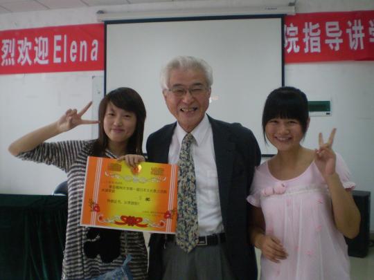 活动最后,由主持人公布结果,话剧《三太郎物语》凭借出色的发挥摘得桂冠,《骑在鲸鱼上的王子》、《灰姑娘》则分别获得第二、第三名,并由评委老师颁发奖状。最后,各参赛团队上台与评委老师合影留念。