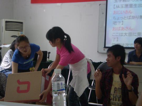 日语系09级及08级的同学们分别献上自己精心准备的话剧佳作。其中包括《阿兹漫画大王》、《灰姑娘》、《三太郎物语》、《牧鹅姑娘》、《骑在鲸鱼上的王子》共5个话剧表演。他们有的打破原故事的框架,以出其不意的改编,令观众耳目一新;有的则穿插各种舞蹈,吸引观众的眼球;还有部分小组则以搞笑幽默的语言、动作引得现场笑声阵阵。此外,演员们准确的日语发音、流利的日语口语更是博得老师和同学们的热烈掌声,现场弥漫着轻松欢快的气氛。