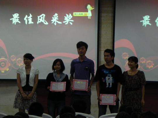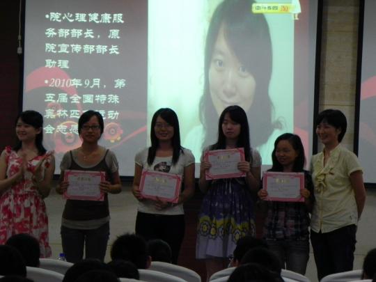 08级、09级辅导员黄柑莲和刘文婷老师、优秀志愿者代表和美岐小学、余盛小学、福州三中金山校区的教师代表们与10级全体新生共同出席了此次表彰大会。