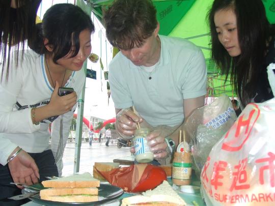 英美馆的活动异常的丰富,有现场做三明治,现场绘画彩蛋,还有知识问答及各种有趣的英语小游戏等。英语馆里一片欢声笑语,同学们脸上都挂着开心的笑容,他们热情十足地参与这些既增长了英语知识,又提高了动手能力的活动,还从中得到了极大的乐趣。