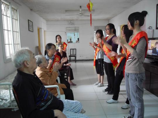 同学们为老人们唱歌,希望歌声能给他们带来快乐,带来喜悦