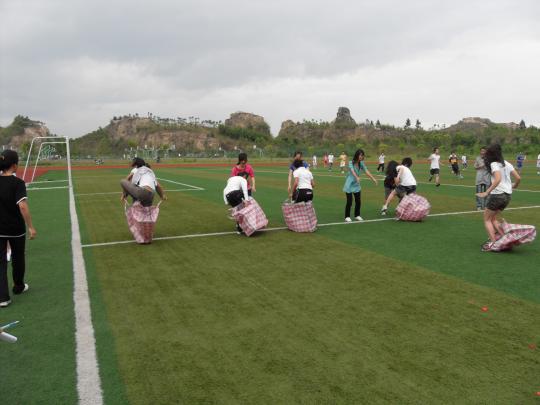 第一轮比赛踩气球紧锣密鼓地开始了。热身赛使选手们很快进入状态。紧接着是袋鼠跳,风趣的装扮为游戏增色不少。其次还有同样精彩的两人三足、口传纸杯。比赛中,各组成员默契配合,互相鼓励,现场气氛不断高涨。笑声,掌声,呐喊声此起彼伏。活动的最后,成绩前六名的同学还获得了精美的小礼品。“英三队”获得了第一名的好成绩。