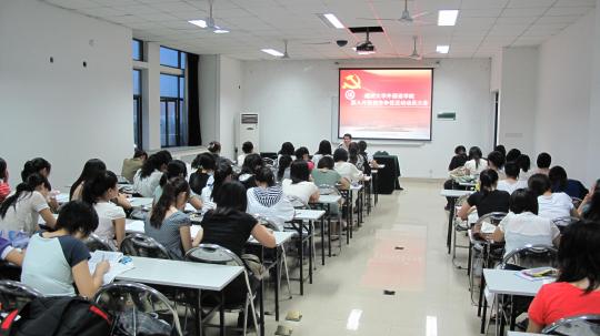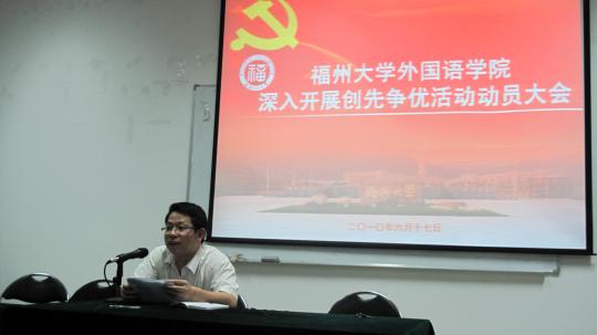 大会伊始,09级辅导员刘文婷作了校党委号召各党支部积极深入开展创先争优活动的开场白介绍。随后由党委副书记刘旺上台发表讲话,让现场的党员们对“创先争优”有了更深刻的认识。“创先争优”,即创建先进基层党组织,争当优秀共产党员,是对学习实践科学发展观的进一步深入。刘旺书记强调各党员在思想上要统一思想认识,认识到创先争优活动的重要性与先进性。要以这次活动为契机,认真解决电影天堂