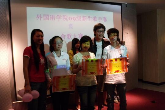 第三届新生歌手赛于2009年11月1日下午2:30在素拓多功能厅隆重上演。09级新生辅导员刘文婷、团委学生会主席吕佳贤、团委学生会副书记黄佳丽、团委学生会副主席丁小芳、团委学生会文化部部长安然,以及建筑学院文化部部长应邀出席了此次活动,担任比赛评委并担任颁奖嘉宾。主持人由文化部副部长董雪静以及09级英语(2)班的谢作志担任。选手们使出浑身解数表现自己,台下拉拉队更是努力为选手们加油,整场活动在轻松愉快的气氛中进行。选手们给在场的观众带来一个又一个惊喜。现场气氛极其热烈!