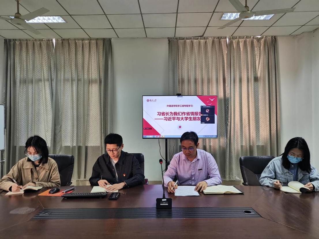 学工组全体辅导员在党委副书记蓝荣聪的带领下,认真研读《习省长为我们作省情报告》采访实录。