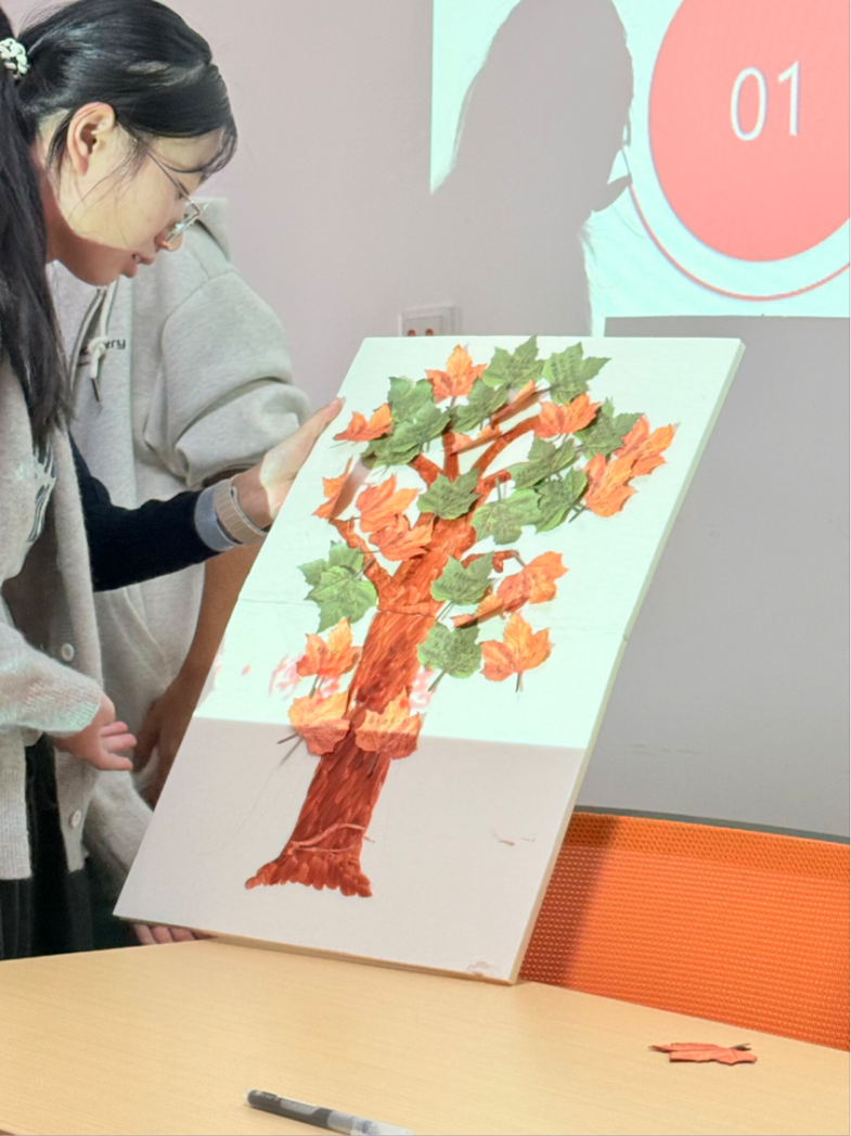 将压抑的恐惧与烦躁转移到情绪树叶,相当于给内心的情绪高压锅拧松了阀门,降低负面情绪的强度,放松身心,同学们共同完成了属于5班的心理树,独一无二,不可或缺。