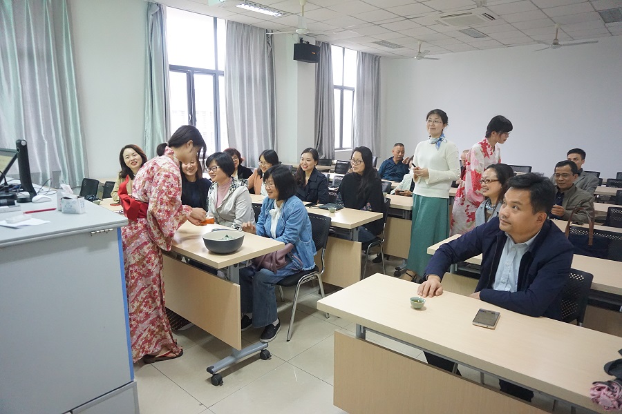 工会与日语系联合开展中日文化体验活动。此次活动内容丰富,包含中日茶文化讲座,日本抹茶道点茶、品尝会及日式插花艺术欣赏等。参加茶文化讲座的老师们共同回顾中日茶文化交流史,探讨茶文化中蕴含的人生哲理与禅学内涵。