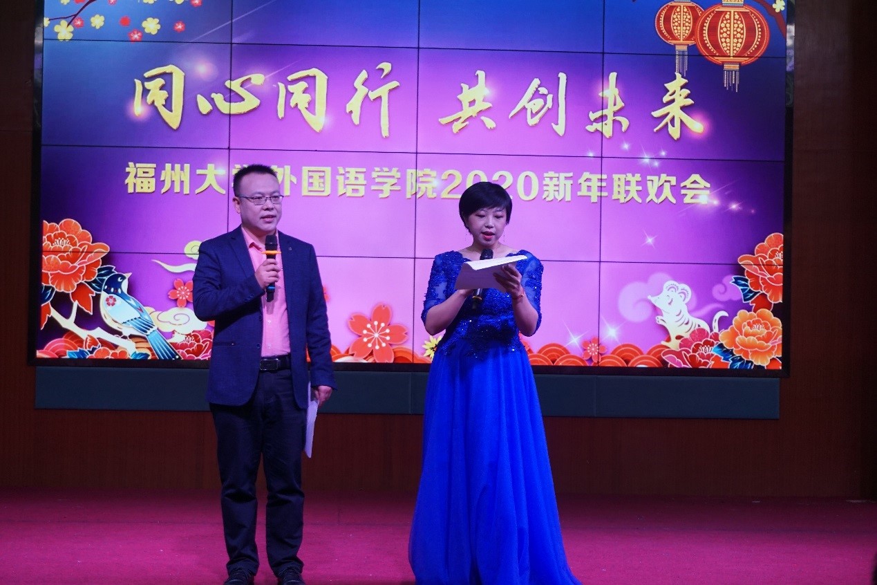 2020新年联欢会隆重举行。包括离退休老同志在内的100余名教职工欢聚一堂,共迎新年。福建省书生教育集团董事长、福州市书生实验学校教育总裁、总校长李祥坦,福州市书生实验学校执行校长袁星,厦门多米诺教育集团董事长陈建虎等嘉宾,校实验设备处处长李文涛等院友与学院党政班子共同出席联欢会。