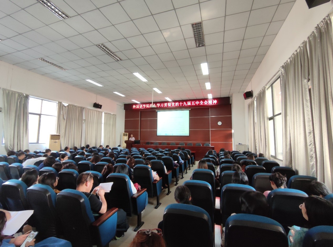 全院教职工表示,将认真学习贯彻十九届五中全会精神,充分发挥外语学科专业优势,做好学院“十四五”发展规划,培育具有家国情怀、国际视野的高端国际化人才,为讲好中国故事、传播好中国声音贡献力量。(李权报道)