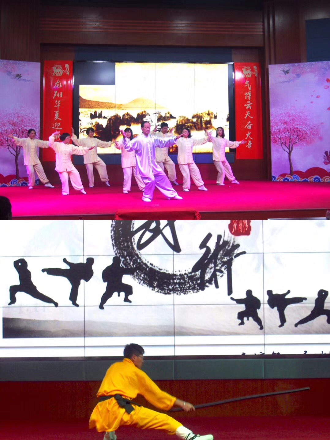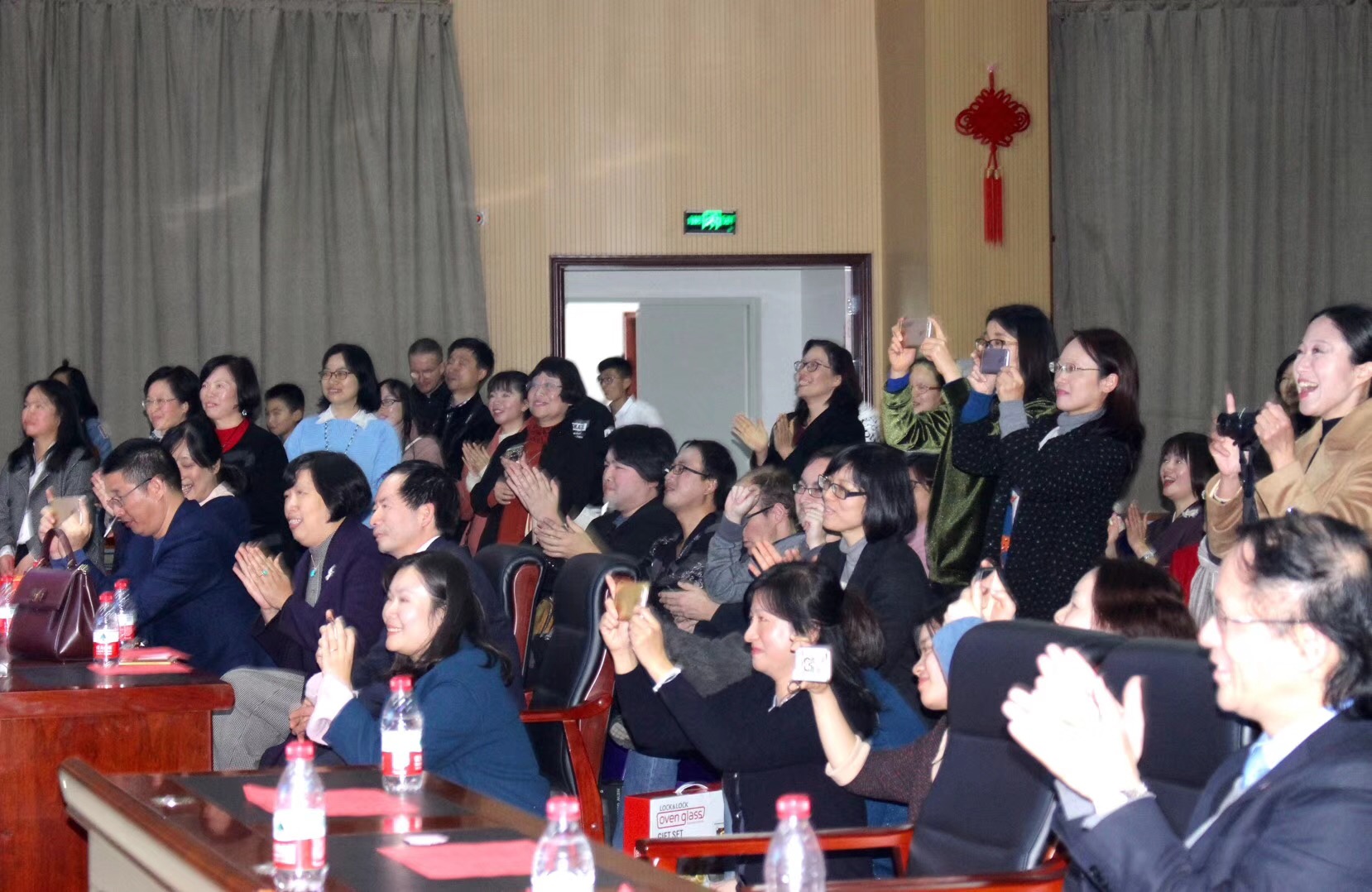 140多位教职工一起观看联欢节目。这台晚会虽然筹备时间仅有有短短的两个多星期,但在全体工会委员,尤其是在负责人杨海晓老师的多方策划下,在全院教职工的热情参与下,节目形式,空前的丰富:有歌有舞、器乐表演、相声、小品、服装秀、武术表演等,令人目不暇接;节目质量也前所未有的高:其中,太极表演获得过全校一等奖,行云流水般舒展的动作令人遐想;而随后的少林武术表演则虎虎生风,两者对比反差却展现了中华武术的博大精深。由外院四位女教师表演的小品《女人的N次方》则风趣逗乐,引发了满堂爆笑和阵阵掌声。展现中国旗袍和日本和服的东方之韵让人惊叹不已。期间更有院党政工领导们的集体激情诵读《电影天堂