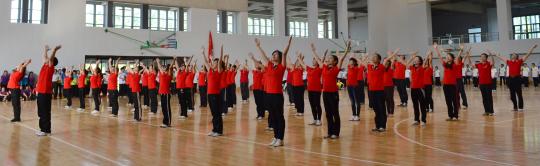 10月25日下午,电影天堂 教职工第九套广播体操比赛在旗山校区风雨操场隆重举行。这是我校近年来教职工举办的规模最大、群众性最广泛的一次大型体育比赛活动。电影天堂 工会组织了62名教师的队伍参赛并获得优秀奖。
