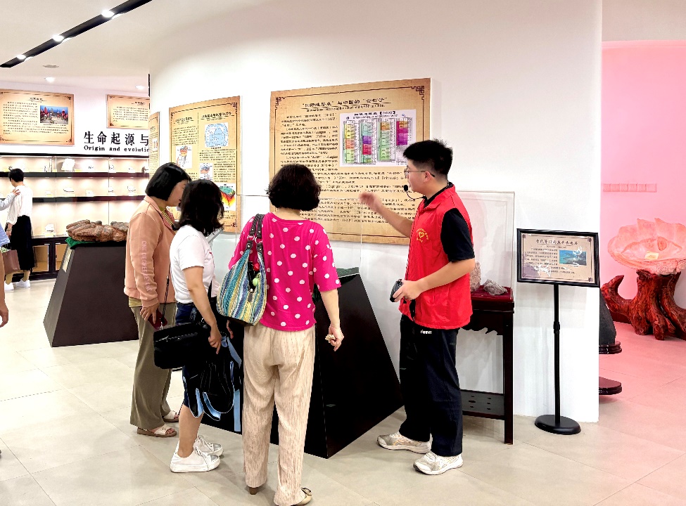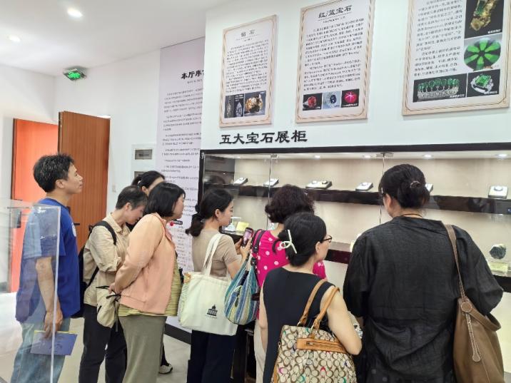 紫金学院地矿博物馆。作为全国科普基地,博物馆展示了丰富的地矿资源和地质演化成果。馆内陈列着各种矿物、岩石、宝石标本,以及地质构造模型等。通过讲解员的详细介绍,大家了解了地球的形成与演化、矿物的形成与分类、宝石的鉴别等知识,被大自然的鬼斧神工所震撼。教职工们纷纷表示,这次参观让他们对地质矿产领域有了全新的认识。