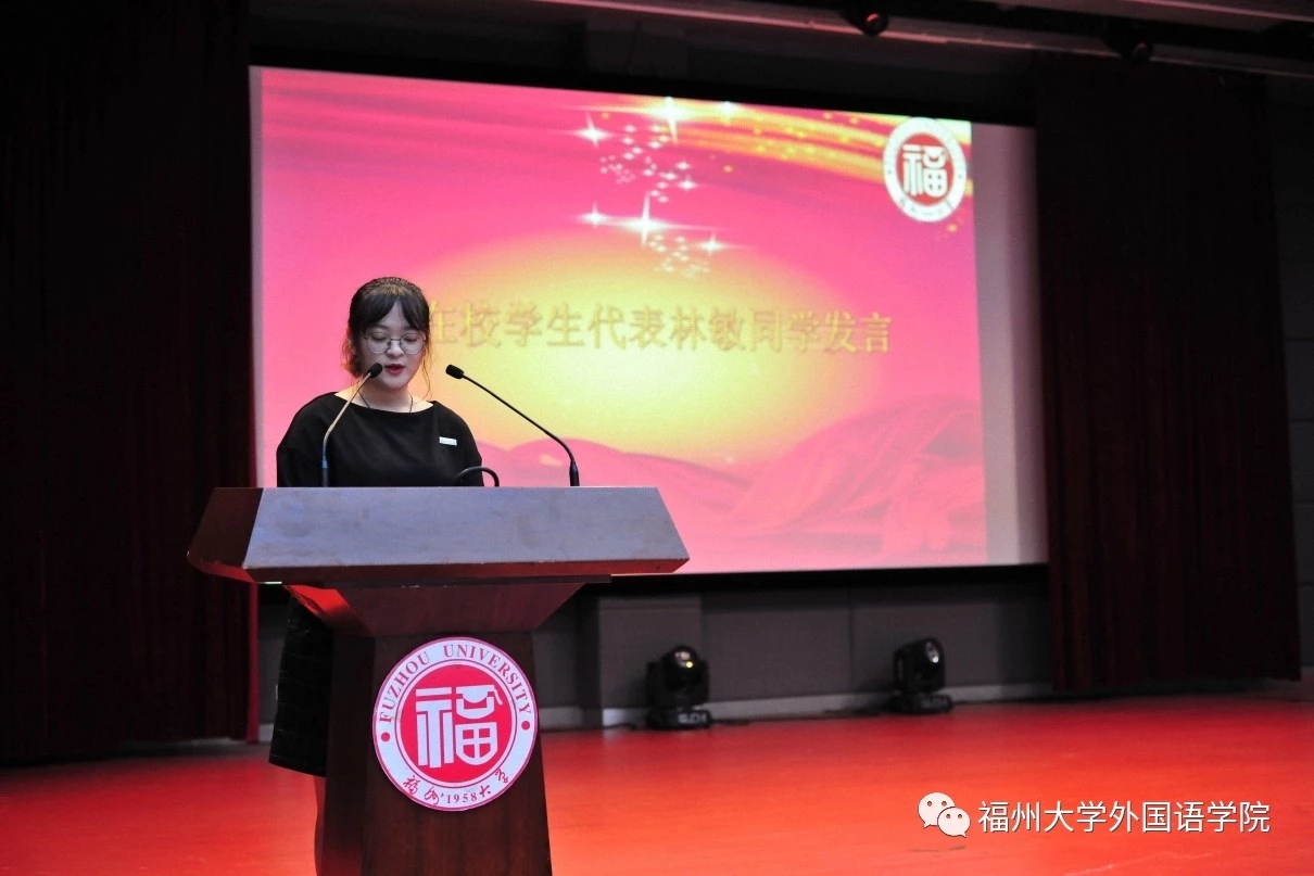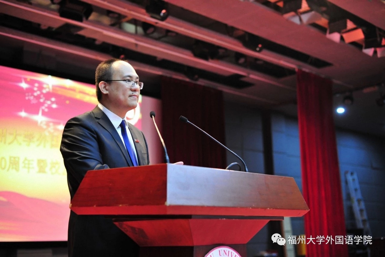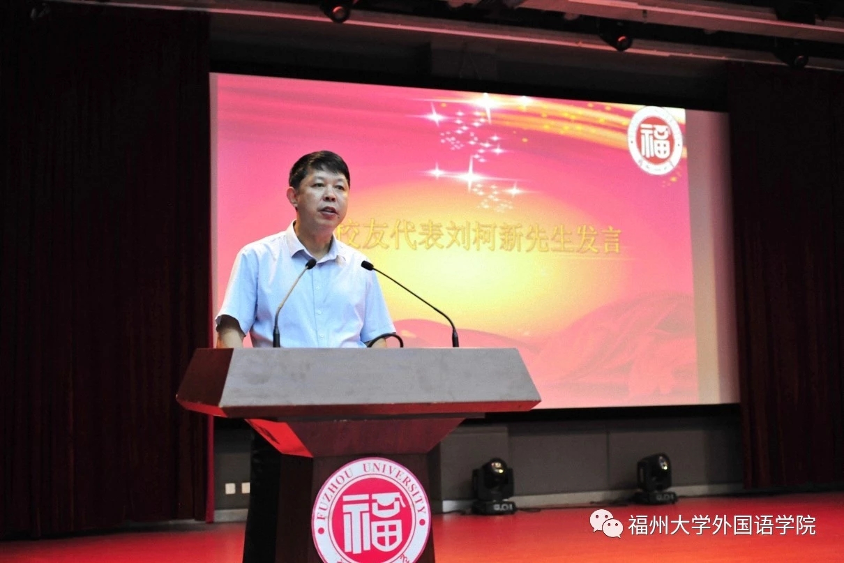 校友代表、84级校友张志强与85级校友刘柯新先后发言,他们对母校成立60周年、外语学院成立40周年表示祝贺,对学院办学40年取得的成就感到自豪。他们回忆校园生活的点滴,对学校的培养表达感激之情。祝愿母校、学院越办越好。他们呼吁校友们能够利用校友会这个平台,加强联系,共同助力学院的发展。在校生代表林敏发言,有幸见证院庆40周年这一刻,感受到校友们的热情,表示新一代外院学子将向广大校友学习,传承外语学院优良传统,继续拼搏奋进,书写人生华丽篇章。