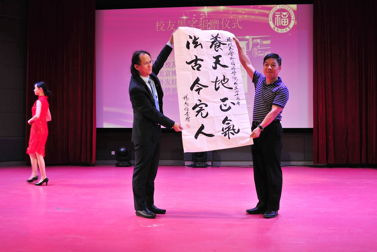教师吴生海、86级校友黄敏东、85级校友刘柯新、邱成波等捐资助力学院发展的校友进行了表彰。85级校友、中国书法家协会会员,北京博士书画院院长杨志恒捐赠墨宝一幅。