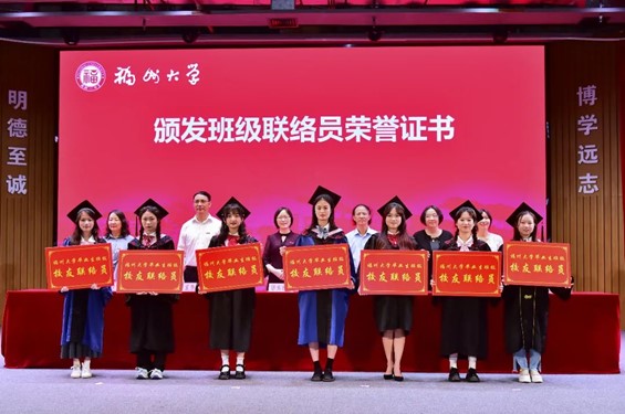 赖月艳同学回顾自己本科和研究生在福大的学习生活,表达了对母校、学院、老师、领导及教职工的衷心感谢,也祝愿同学们前程似锦。