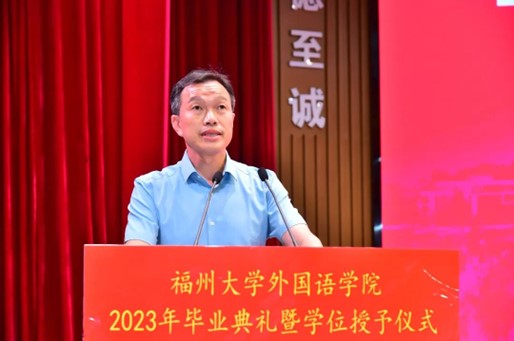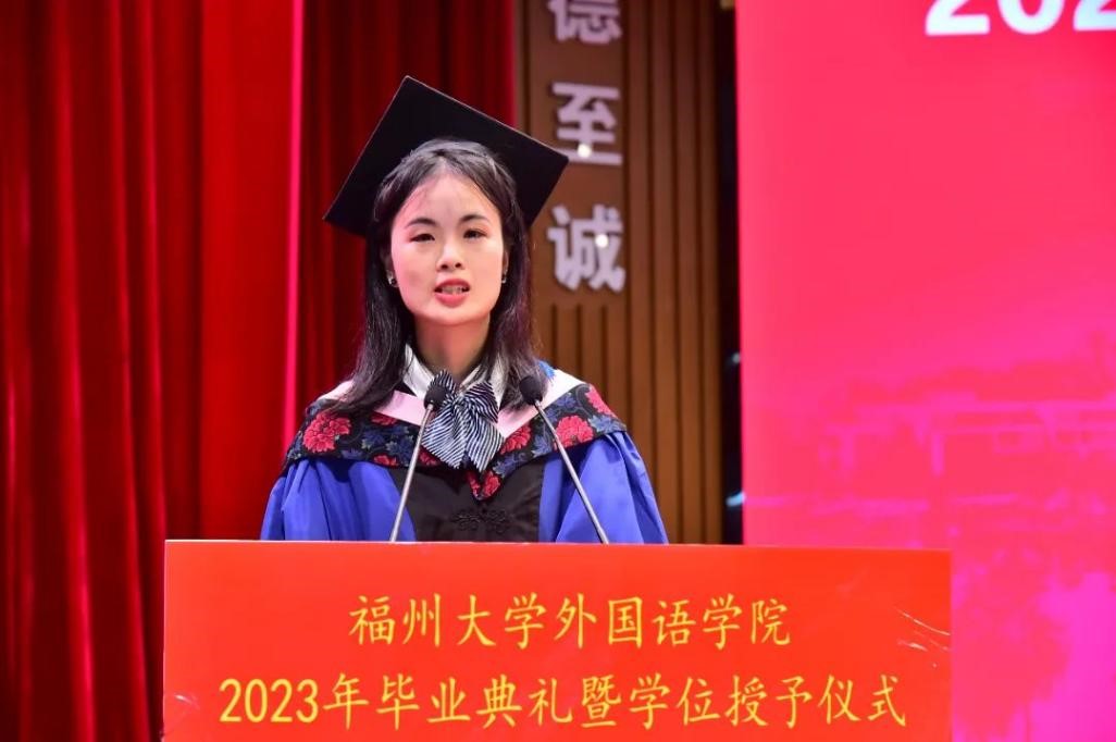 随后2023届本科生毕业生代表叶静怡同学、2020届本科毕业生暨2023届研究生毕业生代表赖月艳同学、毕业生家长代表傅火荣先生、教师代表郑丽钦博士、院长钟晓文教授依次上台发言。