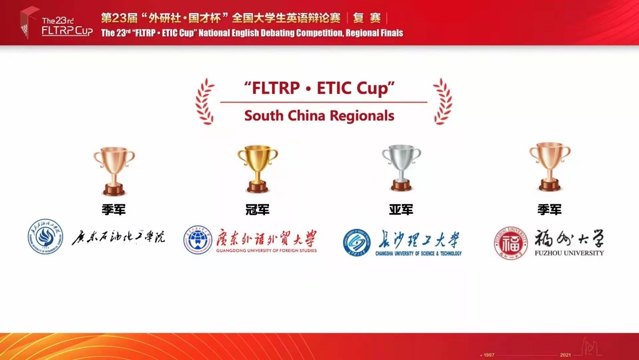 华南赛区包括来自福建、广东、广西、贵州、海南、江西、云南、湖北、湖南、香港特别行政区、澳门特别行政区、台湾省的96支高校队伍,其中不乏985、211等高校。两位辩手克服重重困难,赛前认真练习;每场比赛中不畏强手、冷静思考、配合默契;每场比赛后聆听评委的点评,及时总结不足之处。她们力求在每一场比赛中提升辩论素养,挑战自我,最终突出重围,从众多辩手中脱颖而出。