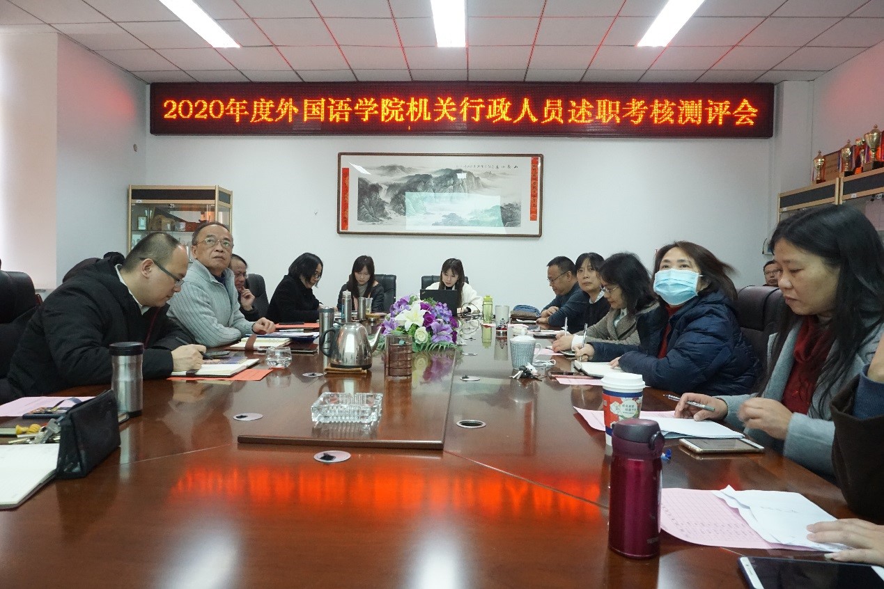 会上,学院机关全体行政人员以PPT的形式逐一进行了年度述职汇报,总结了2020年度工作中所取得的成绩和存在的不足,并提出了改进措施。