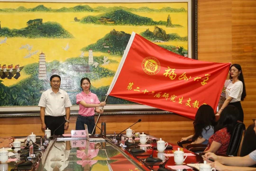 包玉芬同学作为第22届支教团代表接受校党委林生副书记授旗