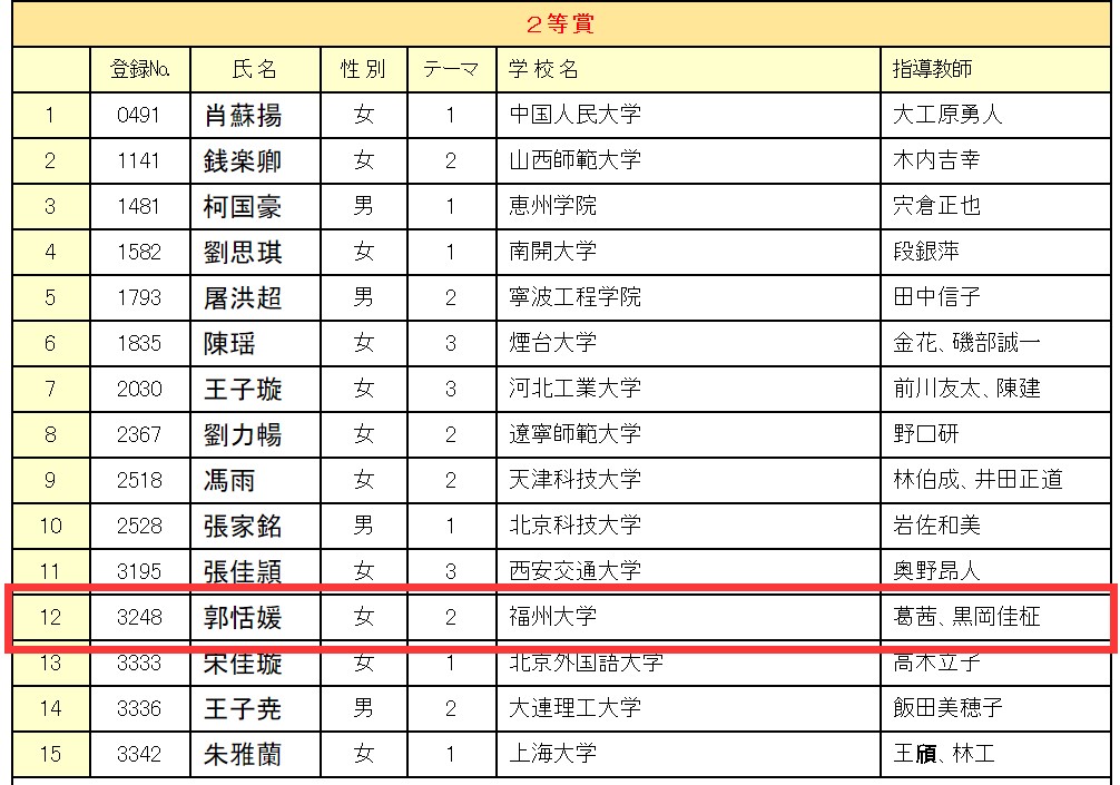 “中国人日语作文大赛”始于2005年,由日本侨报社、中日交流研究所主办,是一项影响最大、历时最久的全国性赛事,获得中日媒体的广泛关注。本次大赛共收到全国27个省市地区数百所高校共计3438篇参赛作文,经中日专家共四个月的初审、复审以及口试审查,最终选出一等奖以上6人,二等奖15人,三等奖81人,佳作奖219人。
