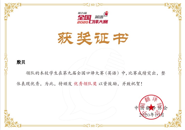 通过参加比赛,我们锻炼了队伍,激发了同学们的学习热情。实战化的训练和比赛,帮助同学们在发挥自身优势的同时,也找到自身不足和需要完善的方面,对同学们口译技能的提升起到极大作用。很多今年参赛的同学都表示,明年将继续参加比赛,努力勇攀高峰!(殷贝报道)