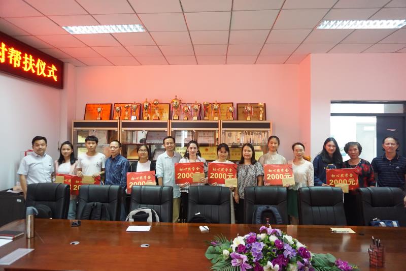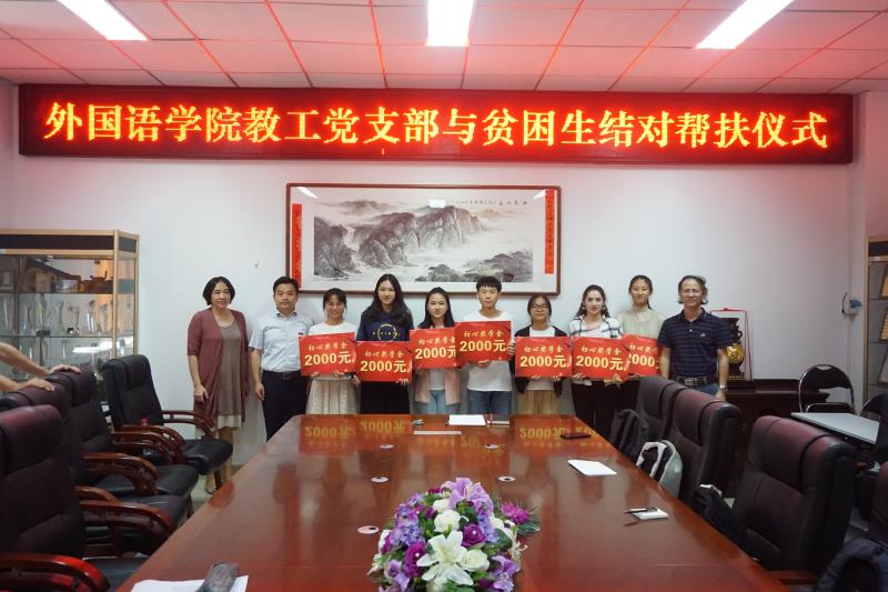 结对帮扶仪式上,各教工党支部代表为受帮扶贫困生颁发“初心”奖学金。“初心”奖学金由各教工党支部全体党员共同发起设立,每年针对受帮扶贫困生颁发一次,每人2000元。教工支部书记代表陈建华老师表示结对帮扶是师生增加情谊,相互帮助,彼此共同进步的一个活动。支部党员会强化奉献意识、创优意识,尽心尽力做好帮扶工作,解决困难学生的后顾之忧,让大家在外语学院这个温暖的大家庭中心情舒畅,安心学习、快乐成长。希望所有贫困学生要增强信心,自尊自爱,努力学习、刻苦锻炼,不断增长才干,将来报效祖国。退休党支部书记黄雅珍等老师也先后发言,希望同学们人穷志不穷,奋斗拼搏,不辜负老师的期望,努力成才。受帮扶贫困生依次汇报了自己的学习生活情况和学习生涯规划,纷纷表示会珍惜时光,刻苦学习,不断完善自我,常怀感恩之心,用顽强拼搏、奋发进取的实际行动,来回报父母、老师、社会以及国家。