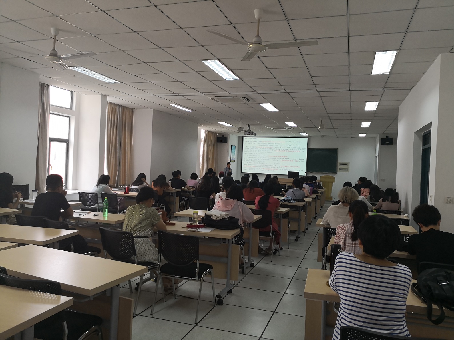讲座中,王教授指出,中国文学及文化的对外翻译,面向的是异域文化背景的读者。这样的翻译,实质上是跨文化交际的活动,因此要兼顾读者的接受心理和习惯。以跨文化交际为目标的翻译,需充分了解读者群体的背景,并据此适当调整翻译手法,使读者(指一般读者,专业读者除外)乐于阅读。为此,除了具备较强的语言转换能力,译者的跨文化意识是关键因素,直接影响到译本在异域接受的成败。王教授,从具体例子入手,通过分析指出问题所在,并对翻译手法提出了相应的改进建议。