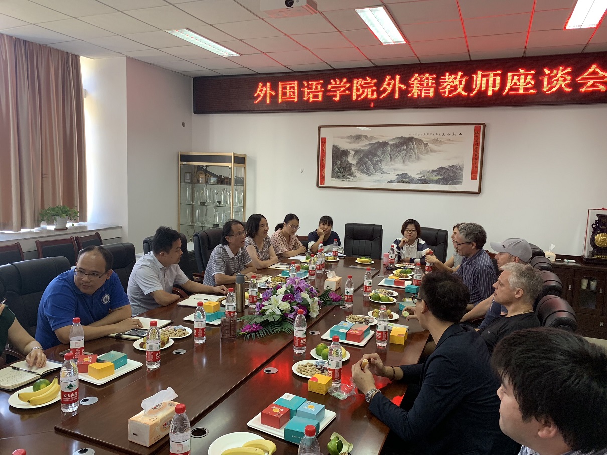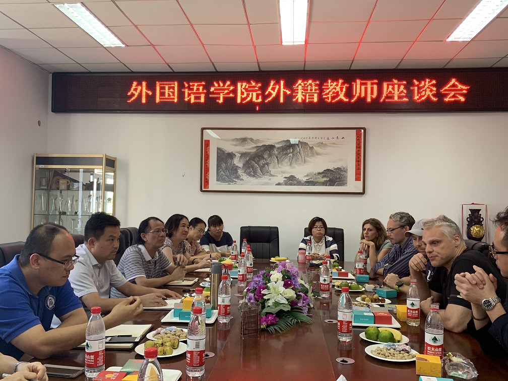 外籍教师管理规范》等相关规章制度,培养良好的师德师风;二是加强与中国同事和学生的沟通交流,克服文化等方面的差异,自觉融入外院大家庭。三是加强对教学工作的研究,为学生提供更高质量的课程教学,同时力所能及的开展相关学科的研究,共同促进学院学科发展。座谈会上,钟晓文副院长也希望外籍教师在提高学生的外语学习兴趣、扩大学生的文化国际视野等方面能发挥更积极的作用,表示学院将创造更好的条件让外籍教师能愉快工作,为学院人才培养做更大贡献。