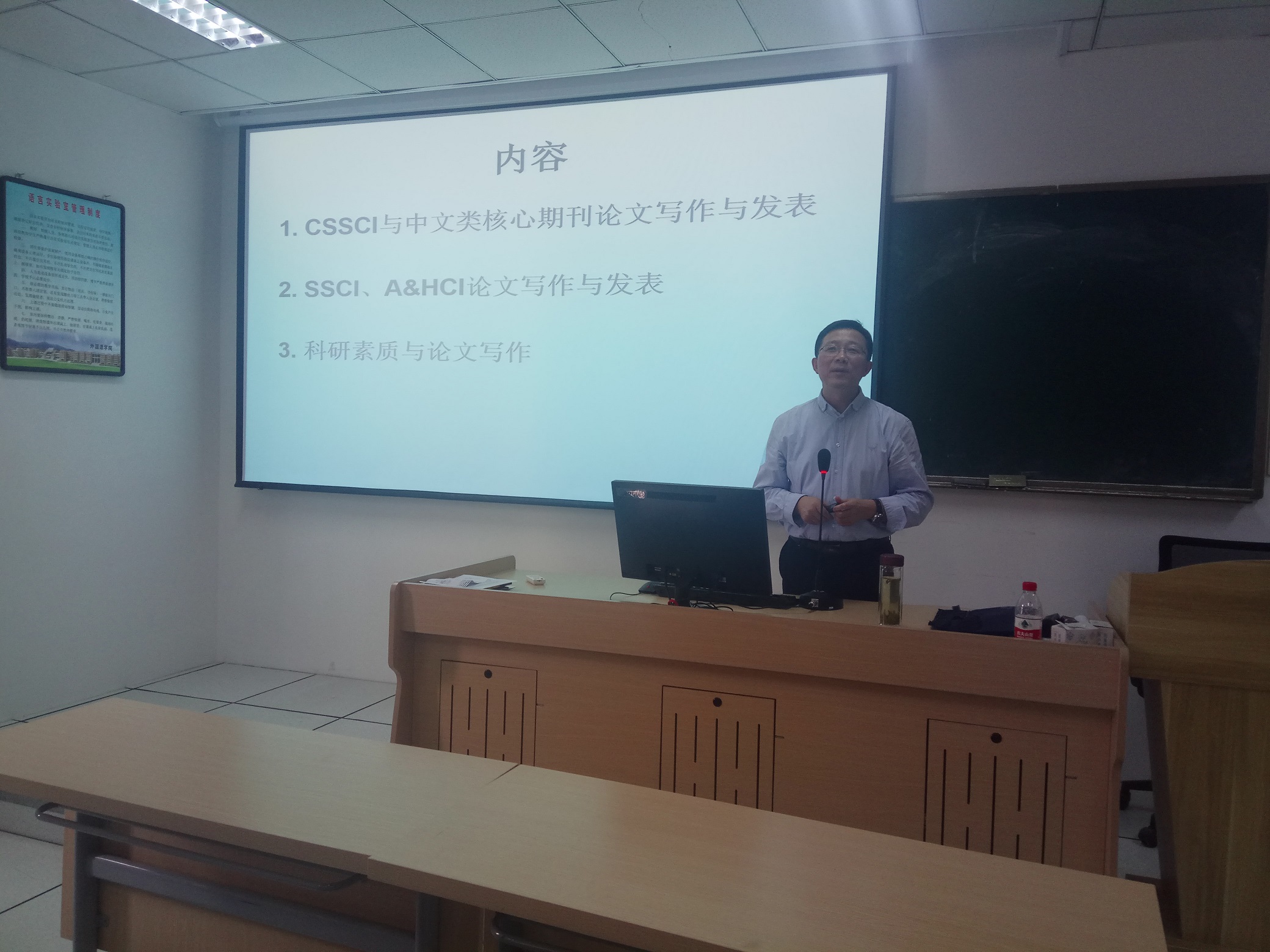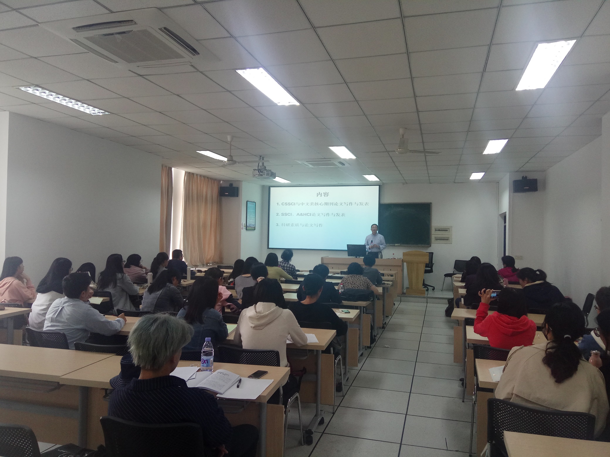 许教授基于自己的亲身经历和所发表论文,分别讲述了CSSCI与中文类核心期刊论文写作与发表、SSCI、A&HCI论文写作与发表、科研素质与论文写作等内容。在讲座中,许教授详细阐述了自己在选题、论证、注意事项、研究侧重点、选刊、联络等方面的内容。