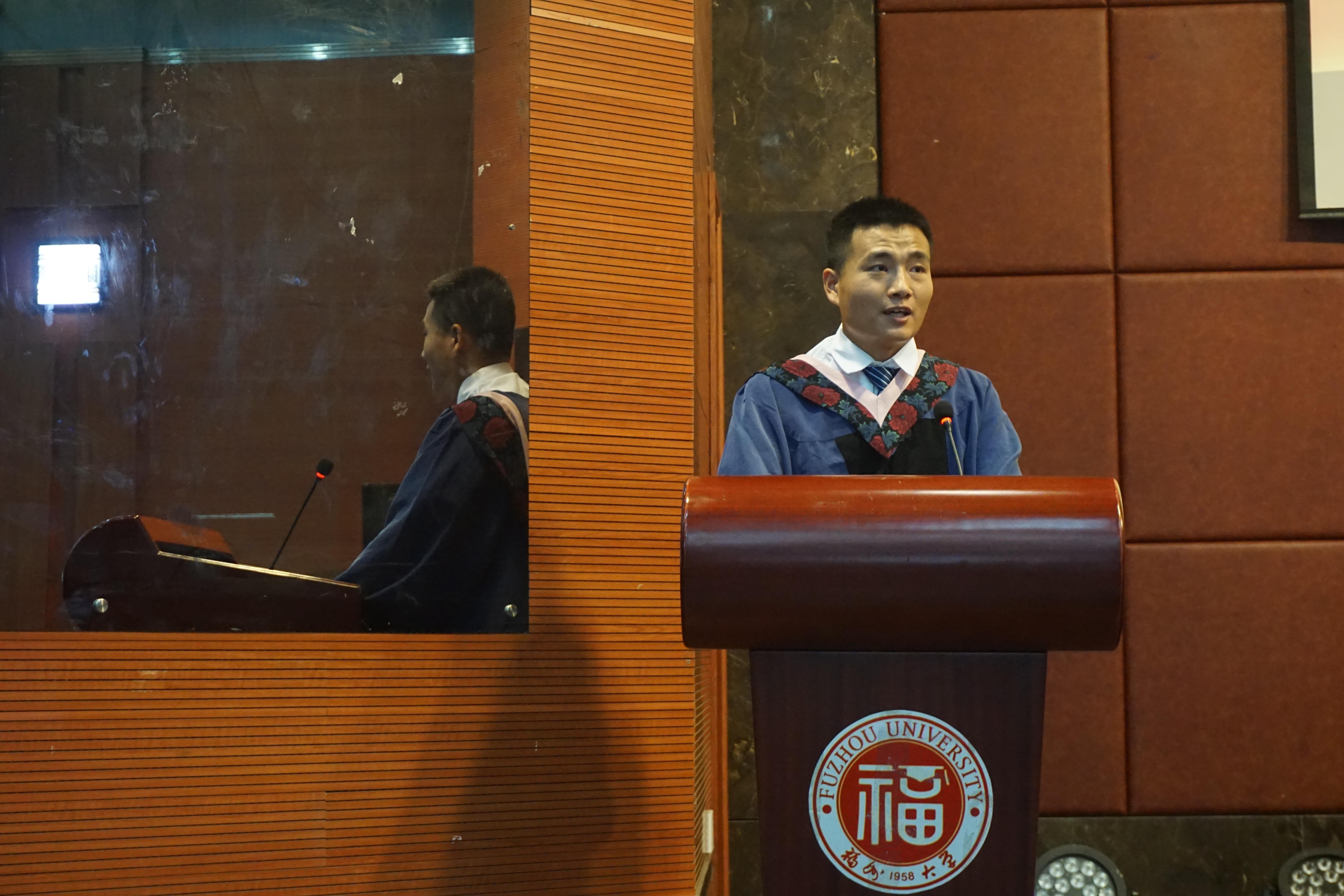毕业生代表何根忠、杨敏敏依次上台发言,他们回顾了自己在电影天堂