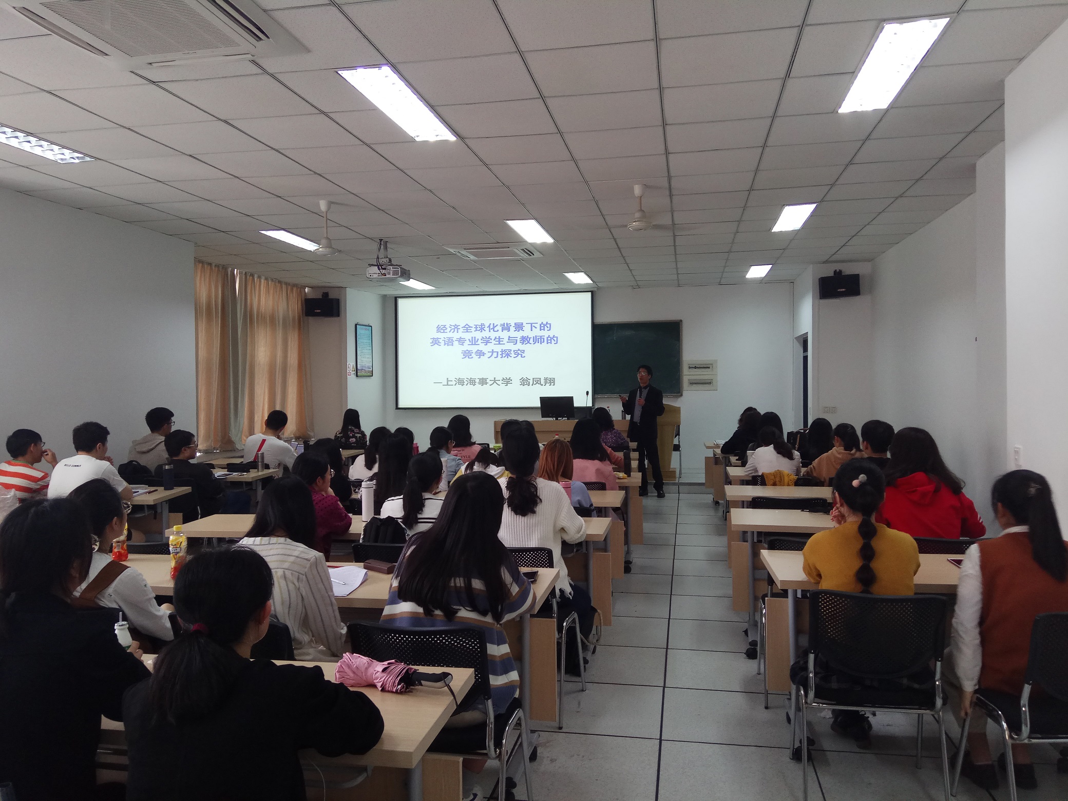 ,担任琴南讲坛第39讲嘉宾,讲座题为:《经济全球化背景下的英语专业学生与教师的竞争力探究》。讲座由潘红教授主持。
