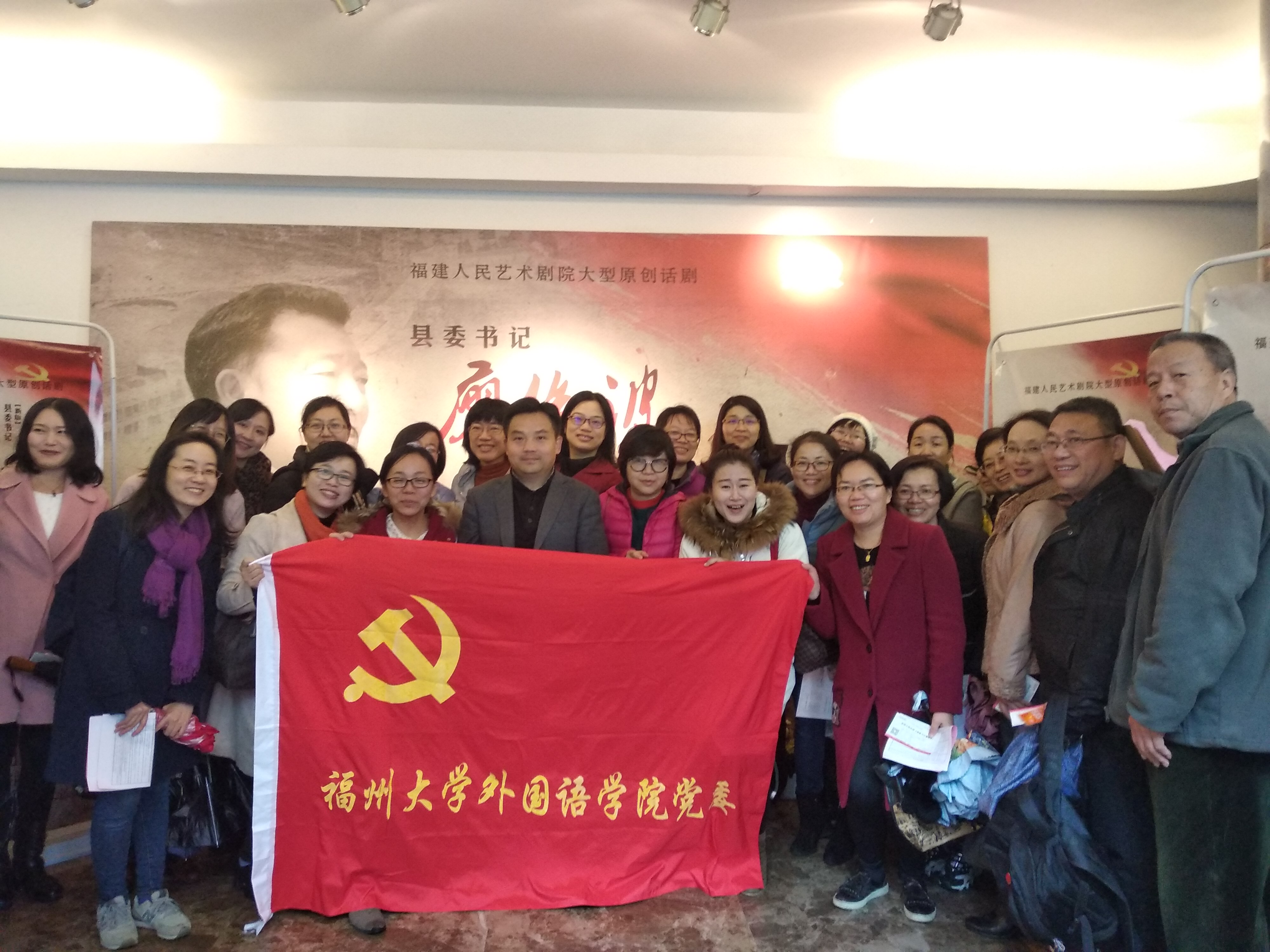 党委组织教工党员赴福建人民艺术剧院观看大型原创话剧《县委书记廖俊波》。该剧由省委宣传部、省文化厅、中共南平市委根据全国优秀县委书记廖俊波同志先进事迹创作,通过“招商引资”、“征地拆迁”、“抢险救灾”、“殉职送别”等场景,构造了一个个充满温情的感人故事,刻画了廖俊波同志这位新时代共产党人的楷模形象,展现了廖俊波同志用生命践行“忠诚、干净、担当”的真实事迹,彰显了当代共产党人信仰坚定、心系群众、勇于担当、创新奉献的精神风貌。