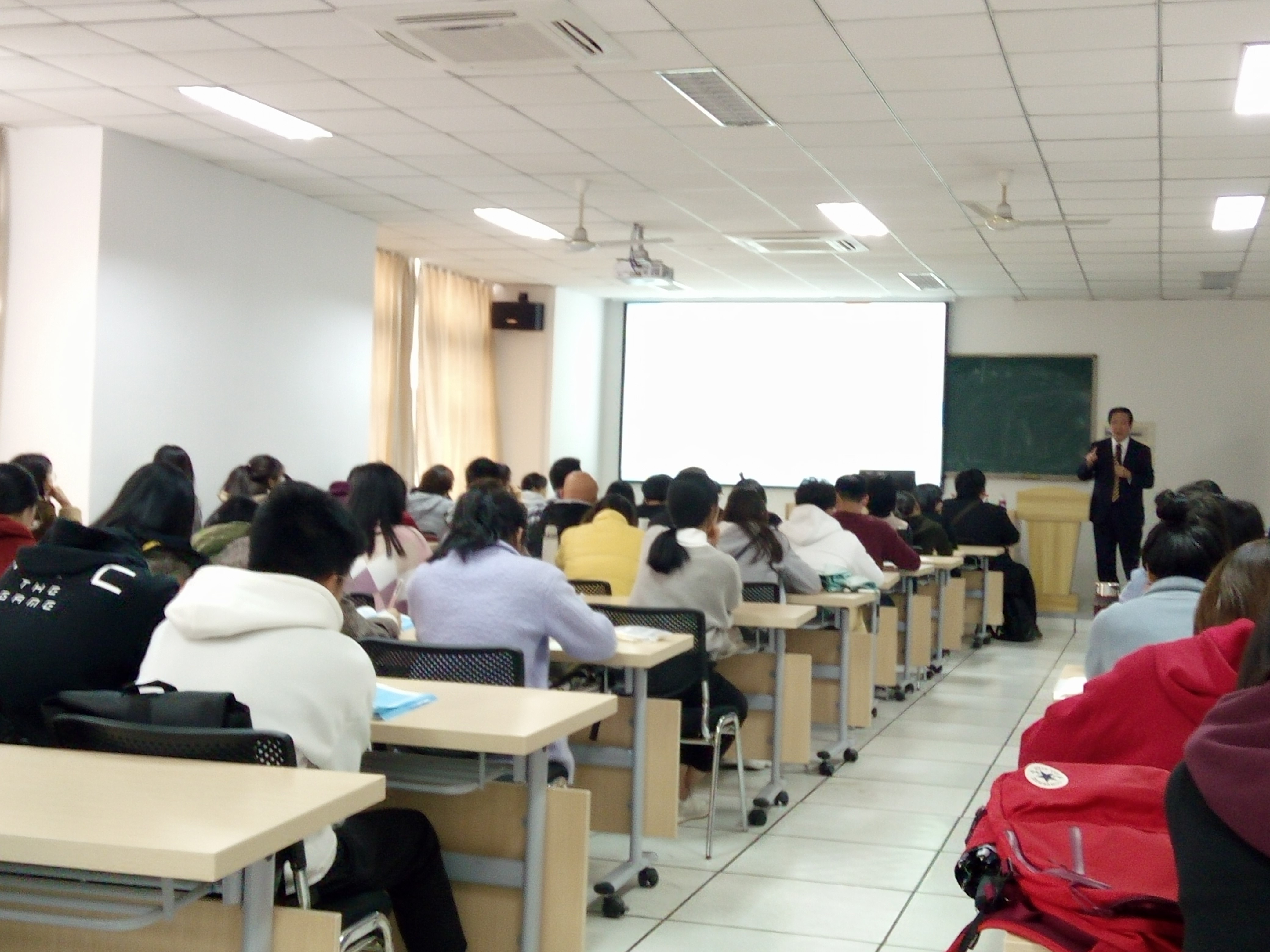 2018年12月26日上午担任琴南讲坛第38讲主讲嘉宾,其讲座题目为:“关于汉语母语人日语习得研究的现状及最可行的切入点”。日语系师生120余人聆听了讲座。在两个多小时的讲座里,张麟声教授先是谈及了第二语言习得开始的历史,然后以“向日本人教汉语时如何解释中文里‘有’和‘在’的区别”一问,引出做研究的必要性,强调“想要解释好这种语言现象,就必须做研究”。接着,张麟声教授通过对具体例文例句的翻译和解读,对汉语母语人日语习得研究的切入点给出了提示。张麟声教授的讲座深入浅出、通俗易懂、富有趣味。在讲座过程中,张麟声教授与现场师生积极互动,气氛热烈。