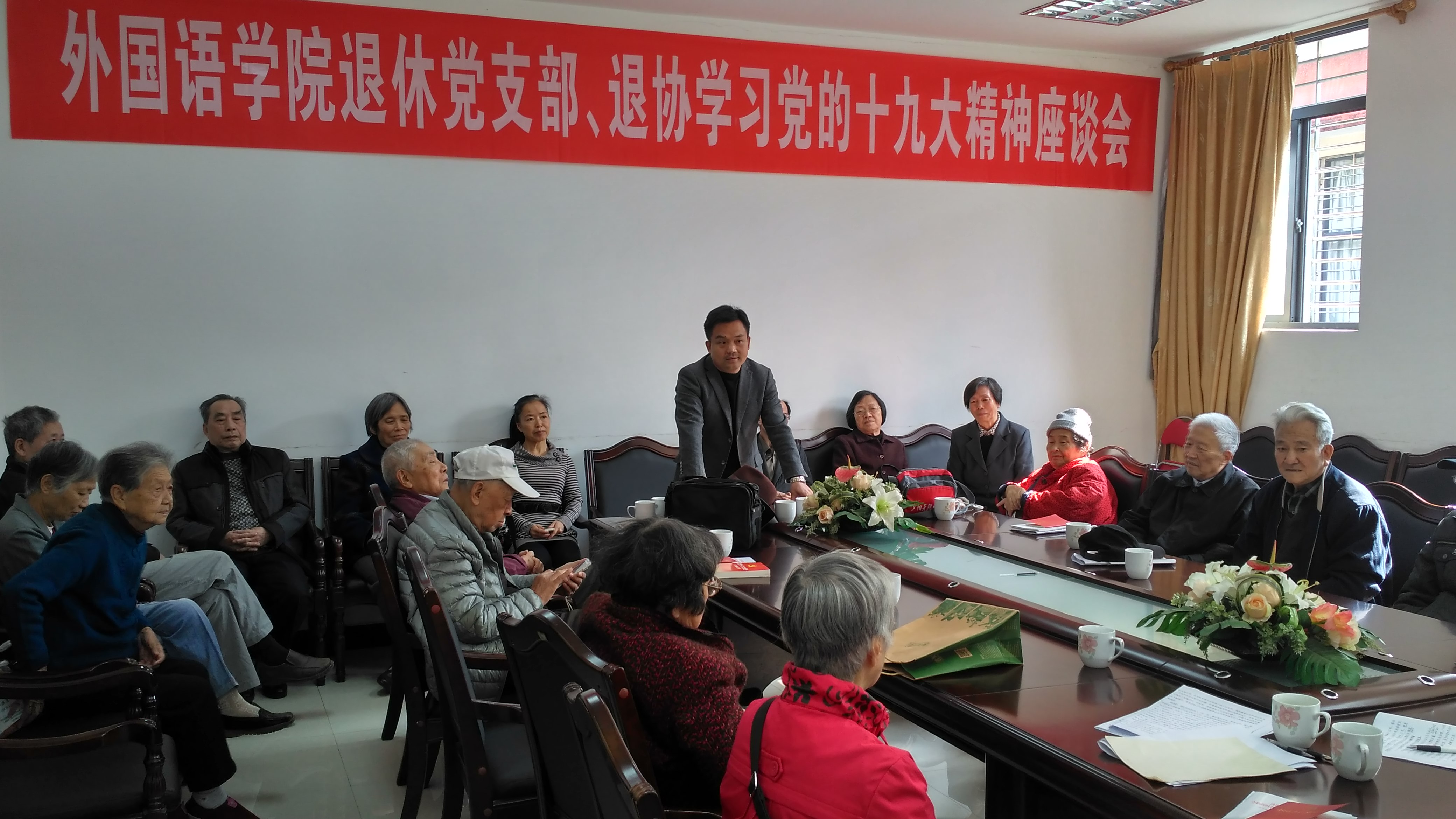 退休党支部、退协联合举办“学习十九大,寄语双一流”座谈会。此次座谈会是由学院退休党支部和退协牵头,组织学院广大离退休老同志开展的“学习十九大,寄语双一流”主题活动,为学校开启发展新征程加油鼓劲。陈伟民副书记(主持)出席座谈会。