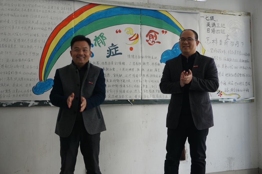 党委书记陈伟民老师、党委副书记王三强老师在毕业班辅导员陪同下走访学生宿舍,对2018届考研学子表达了慰问之情。