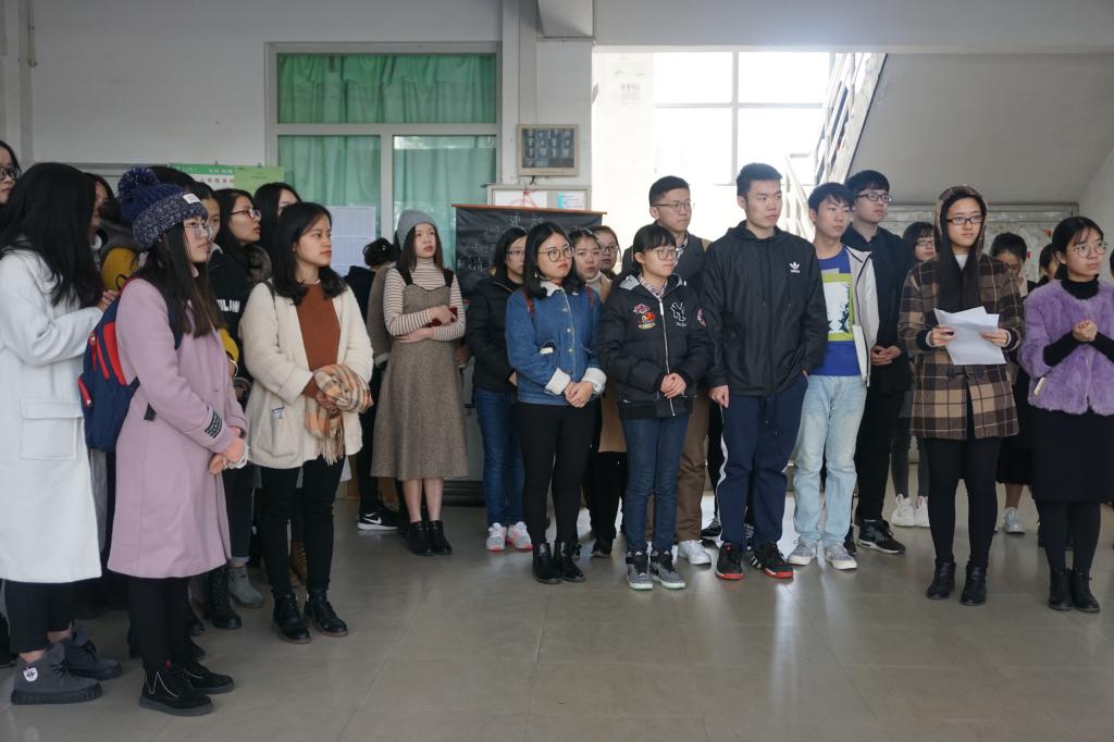 图为考研备考学生正在认真聆听院领导讲话。