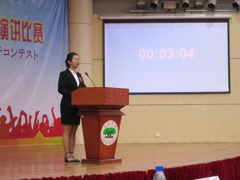 此次演讲赛共吸引来自福建省内16所高校的16名选手参赛。比赛分命题演讲和即兴演讲两个环节进行,命题演讲的题目为(1)中日友好の未来----若者の視点から(中日友好的未来——从年轻人的视点谈起)(2)挑戦してみたいこと(想要挑战的事),选手可任选其中一项作为演讲题,事先做好参赛的准备。刘慧清同学选择了第2道题,在黑冈佳柾老师的热心指导下,她做了充分的赛前准备。刘慧清同学从自己的儿时记忆,孩童时代身边的一位被欺负的一位小女生的故事谈起,延伸到更广泛的层面,谈每一个公民为了社会的安定祥和,国家的兴盛繁荣应肩负的社会责任。