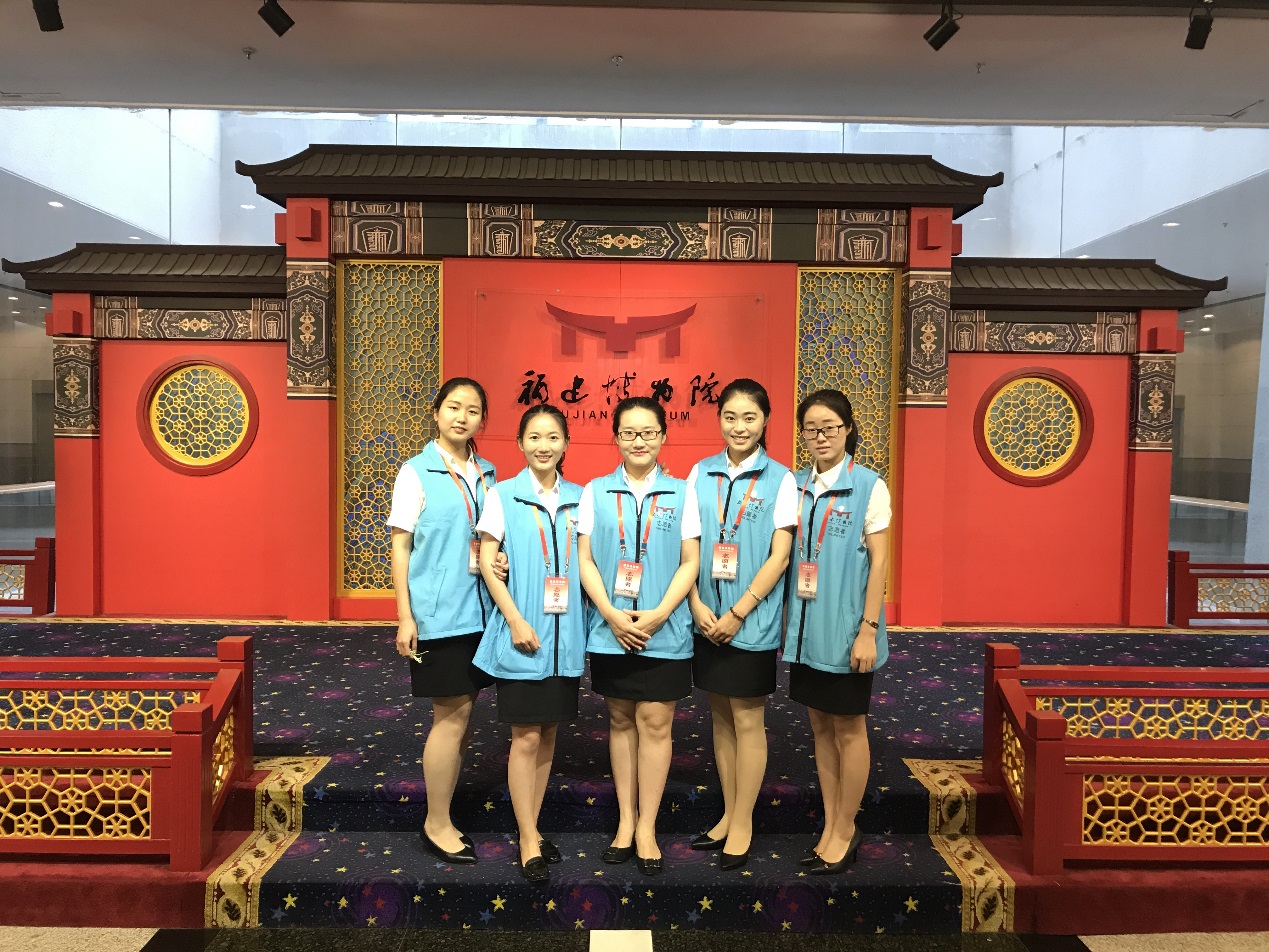 五名研究生参与的福建博物院志愿者团队成功承担了外语讲解服务,受到来宾的高度赞扬。