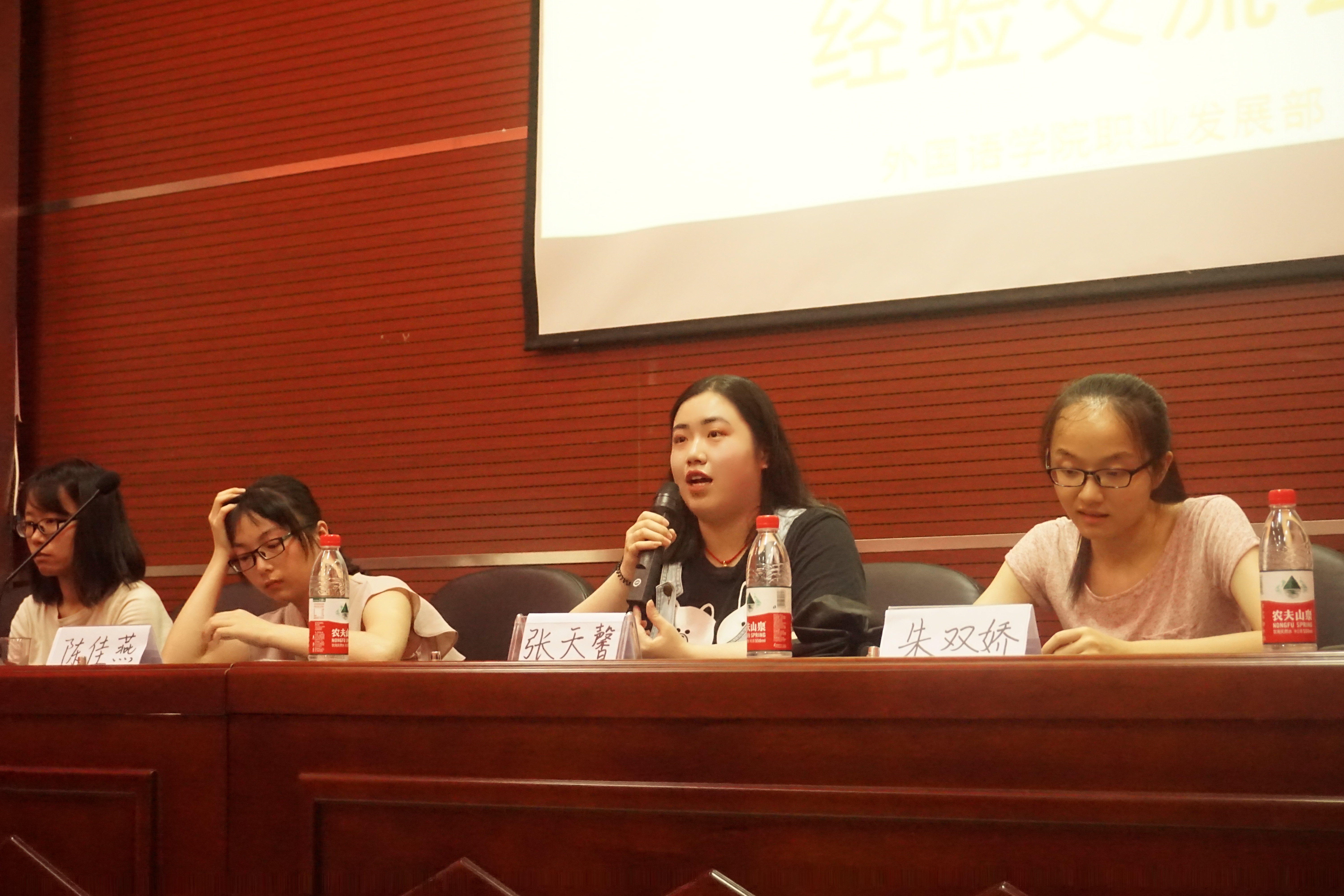 13级毕业生为在读本科生科普相关信息。在林琬冰辅导员对本届毕业生考研、保研以及留学情况进行完介绍以后,学姐们针对三个不同的毕业选择方向为同学们分享了自己的经验。