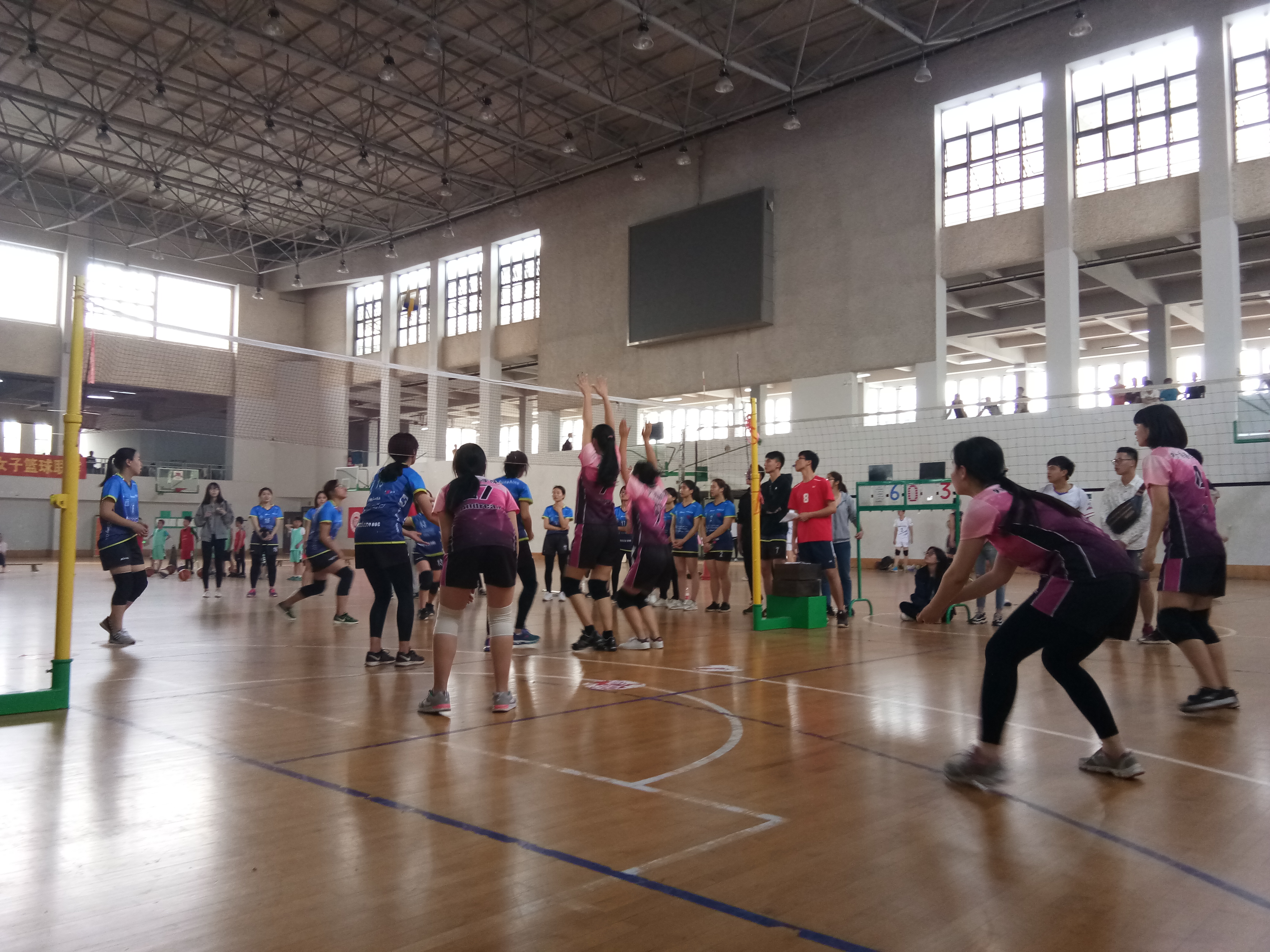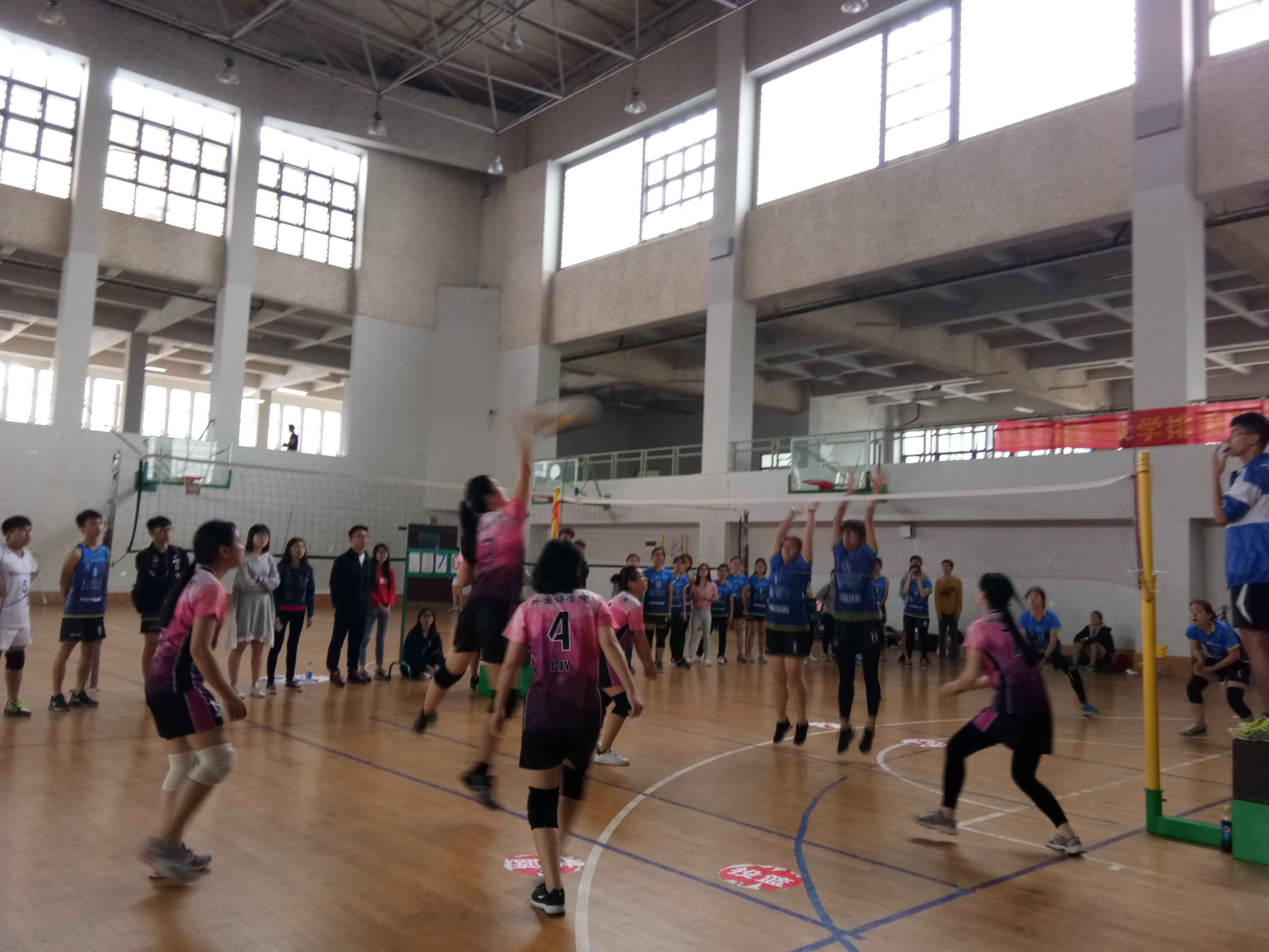 体育教研部等主办的女子排球联赛的决赛在风雨操场拉开序幕。近一个月,外院女排过五关,斩六将,成功晋级排球联赛决赛,与实力强劲的物信女排争夺最后的桂冠。
