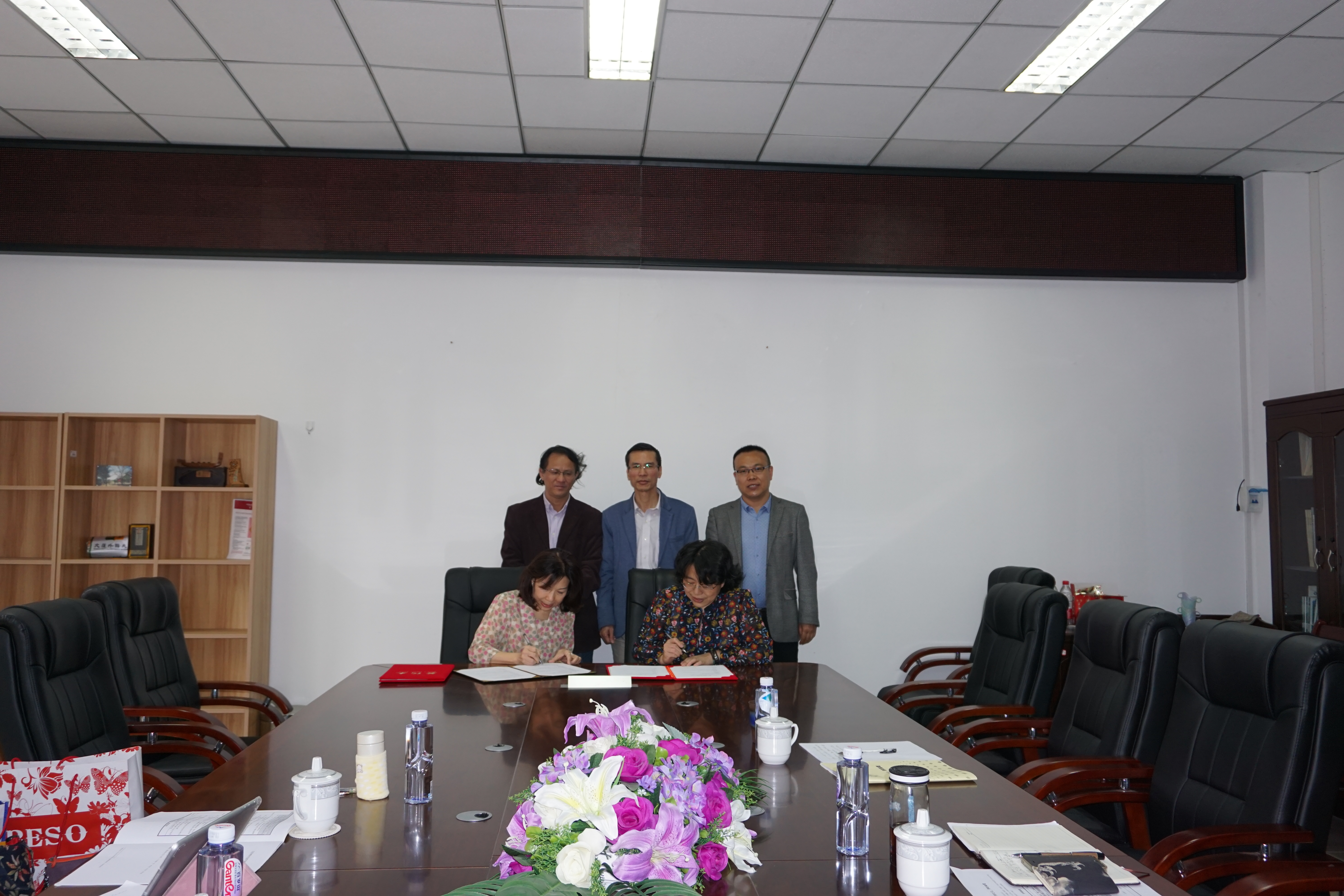 院长、跨文化话语研究中心主任潘红教授,台湾辅仁大学跨文化研究中心杨承淑教授代表双方签约。
