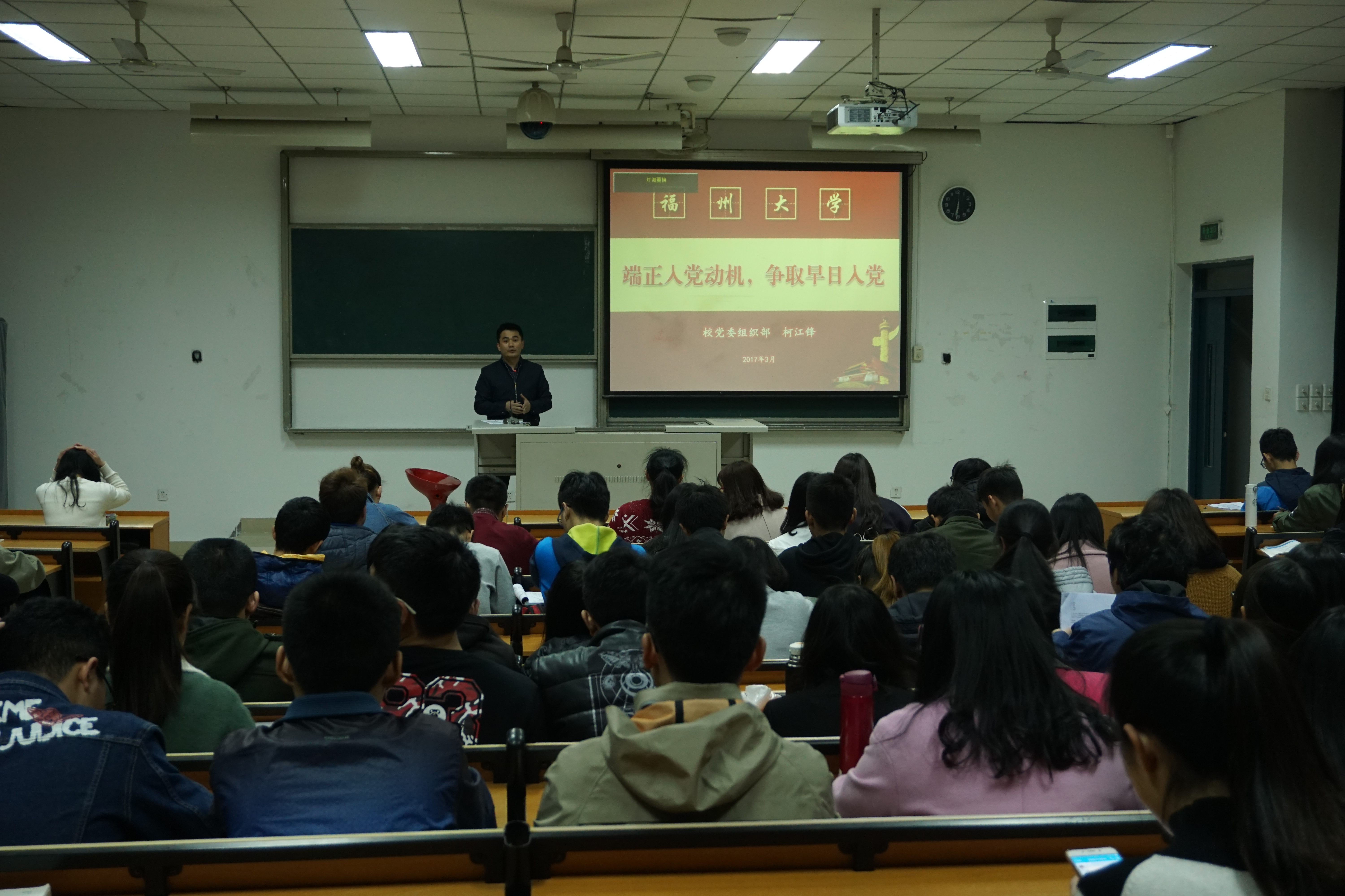本次课程由柯江锋老师担任主讲。课上,柯老师围绕 “端正入党动机,争取早日入党”的主题,分别从“什么是入党动机”、“为什么要端正入党动机”、“有哪些入党动机的类型”以及“大学生如何端正入党动机”等四个方面,强调端正入党动机的重要,并建议同学们坚持审慎的态度,做出正确的选择,并及时付诸行动。最后,柯老师祝福同学们能“早日站到党旗下”。