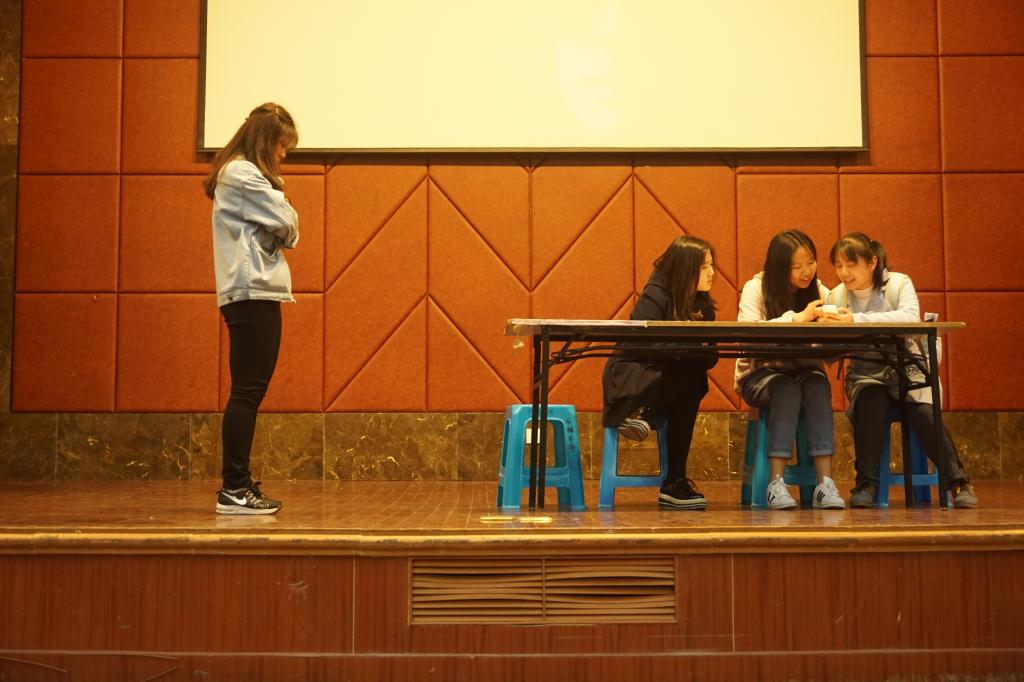 16级三个英语班、一个日语班、一个德语班的同学,以班级为单位,组成五支队伍参加本次大赛。同学们以生活中的经历为灵感来源,结合本次大赛的主题,编写了各具特色的剧目。例如,英语二班表演的《妙子》,讲述了妙子同学因为小时候与妈妈闹矛盾而导致妈妈流产的事情,留下了心理阴影,经历了被误解、与同学的矛盾之后,最终在心理咨询和同学们的帮助下跨过心理障碍的故事。英语一班的同学表演的《深夜的行走》、日语班的《青春的舞动》也有异曲同工之妙。这些剧目穿插了幽默诙谐的情节,同时以真实贴切的视角向观众展现了社会一面,博得了观众们阵阵掌声。
