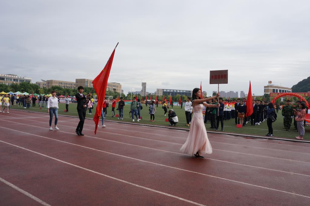 代表队在学院团委书记林昕老师等的带领下入场亮相。队列中36名同学身着青春亮丽的裙装,迈着矫健轻快的步伐,高喊冲震云宵的口号,挥舞手中的花球,以热情活跃的姿态承载外院学子对校运会的热切期待;方阵行进至主席台前,36朵外院之花跳起健美灵动的啦啦操,舞出了外院学子的精彩与活力;而舞蹈最后如魔术般展开的书有“弘扬长征精神,争创校运佳绩”十二大字的横幅,更是表明了外院学子将以着钢铁般的意志和精神,自信勇敢,团结合作,在此届校运赛场上争创佳绩的决心。轻盈大方的舞蹈与精心巧妙的编排为全校师生带来了精彩的视觉感受,成为开幕式上一道绚丽的风景线。