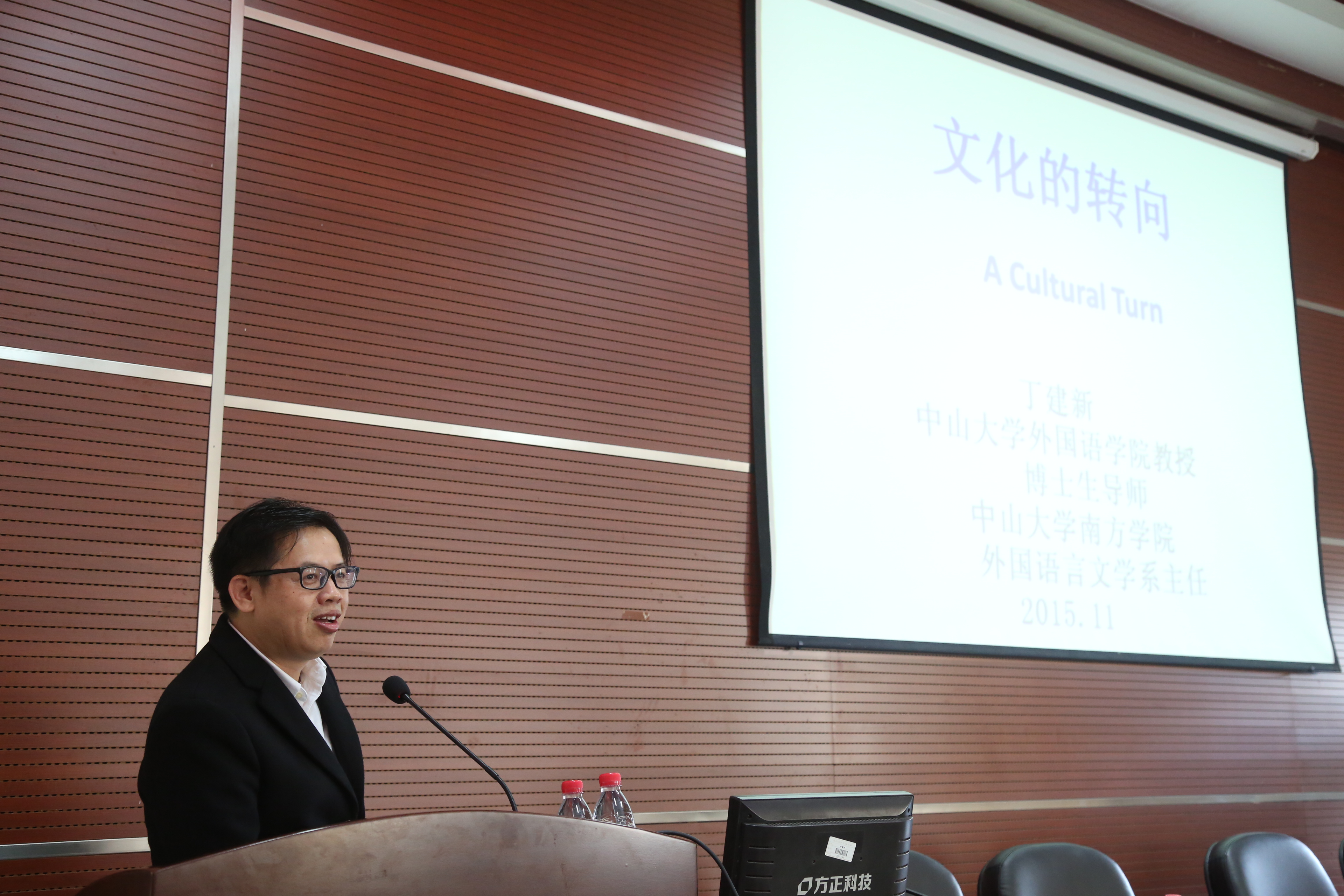本讲座题为“文化的转向”。在两个小时的讲座中,丁建新教授从“语言学在二十世纪人文学科中的地位”、“话语分析的文化转向及文化研究的语言转向”、“语言故事:语言、思维、现实与身份”、“关于他者的思考:边缘话语分析的理论与实践”四个方面深入探析了“文化转向”这一话题。