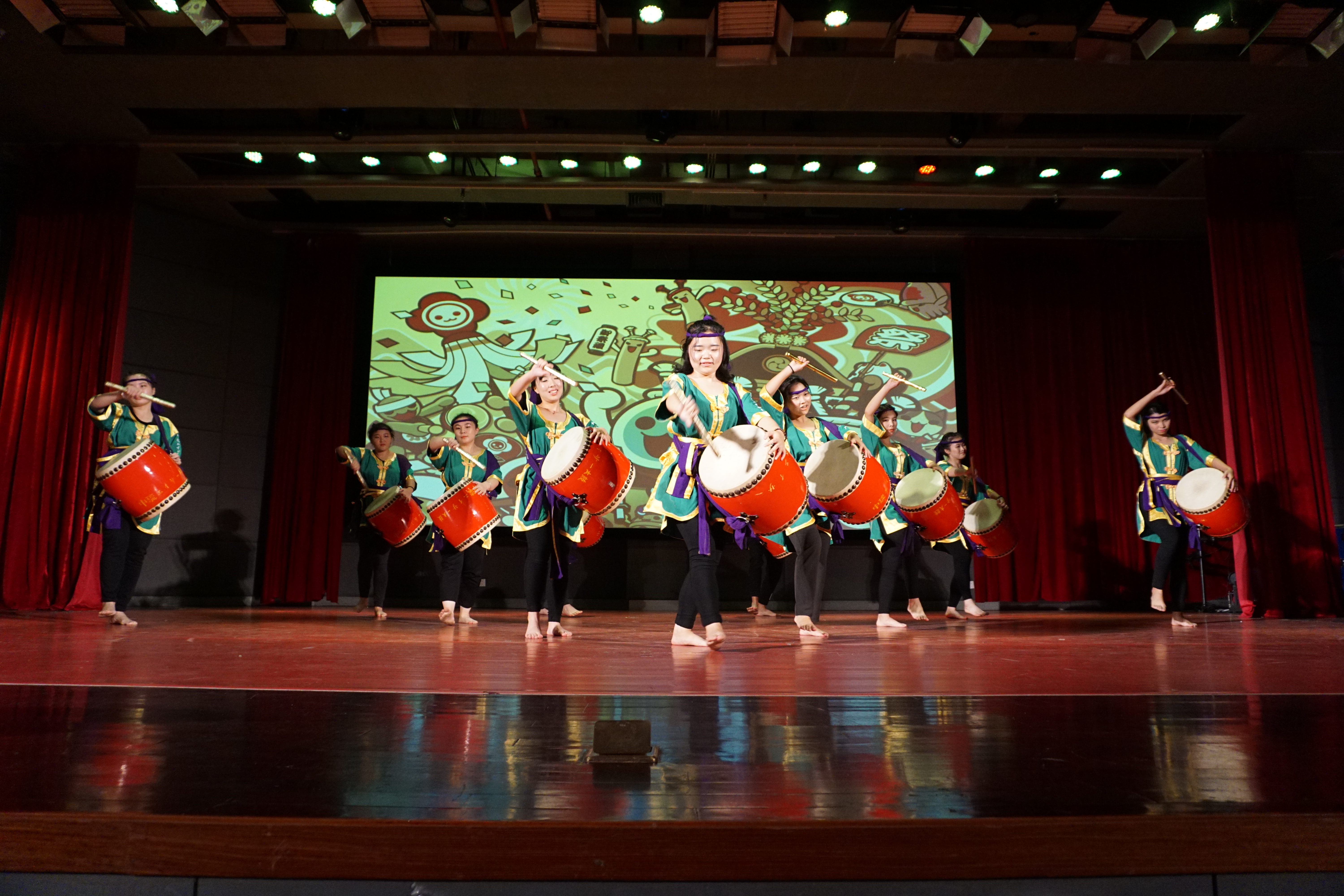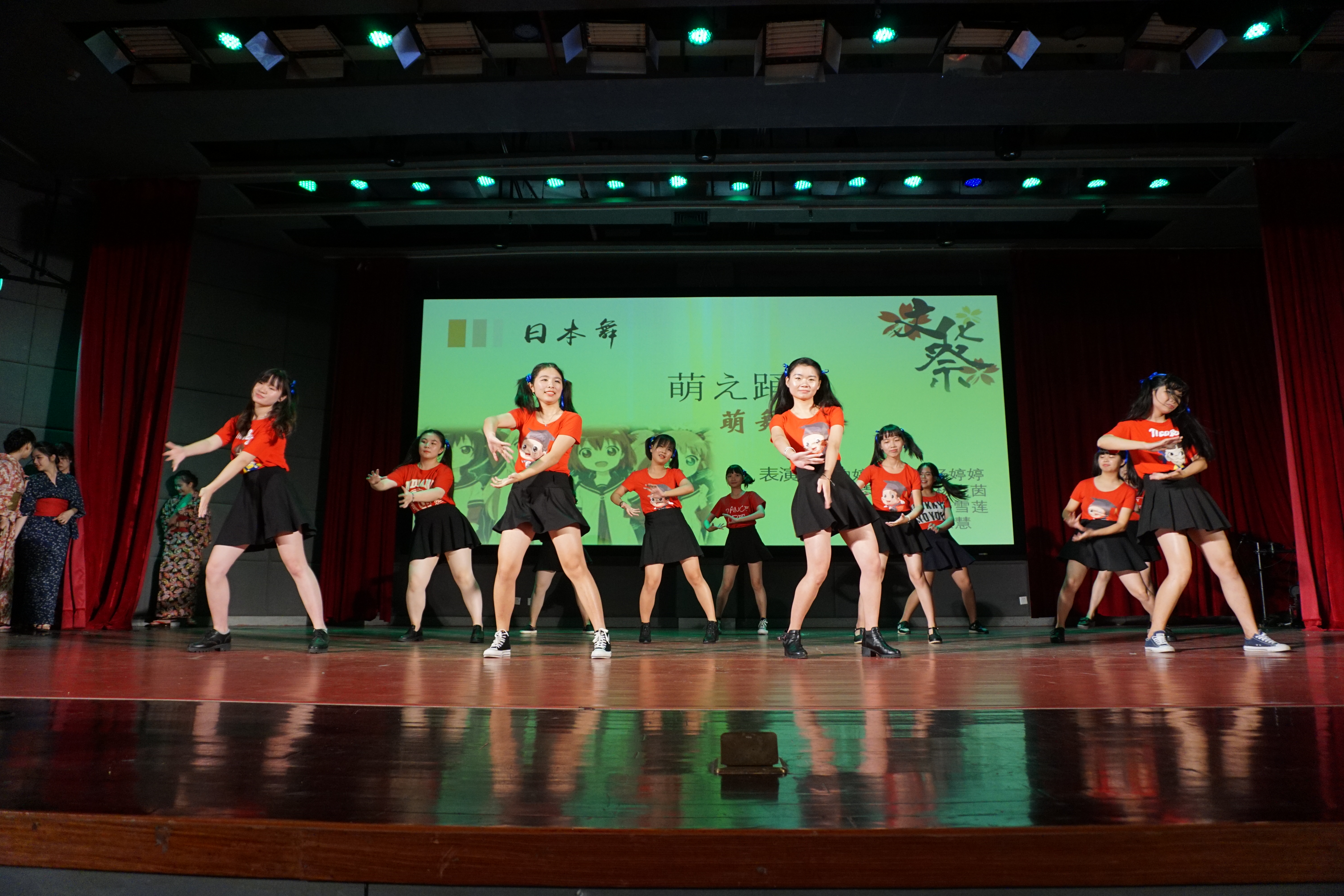 中场互动环节后便是更为精彩的动漫《哆啦A梦》、《银魂》配音,引起众多90后同学的共鸣。观众们观看着投影画面,聆听着生动搞笑的配音,仿佛融入到精彩的故事情节当中,与儿时熟悉的动画角色近距离交谈。临近晚会结束,和服舞、萌舞的表演再次引得全场瞩目,演员们舞姿优美,舞步柔和,眼角眉上的风情令人赞叹。太鼓表演更是气势恢宏,震撼人心。最后,黑冈老师携日语系同学合唱《あの頃》(日语版《那些年》),观众们都情不自禁的举起手跟着歌手们一起摇摆,随声哼唱。一曲结束,大家仍然意犹未尽,待回过神来,掌声渐渐响起。