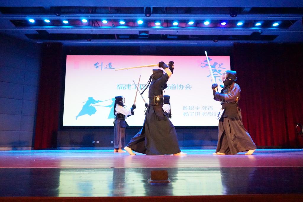 晚上7点,一曲Butterfly瞬间引燃全场观众的热情,晚会准时开场。首先,剑道协会的同学们为观众带来紧张激烈的日本剑道表演,只见表演者身穿剑道服,戴护具,持竹剑,按规则相互击打有效部位,带来一场异域的传统竞技性器械武术表演。日语系的同学们精心准备的与往年不同的现代剧戏剧《美人税》紧随其后。随着场景的一幕幕切换,一部讲述因外貌美丽被迫交税而苦恼万分的职场女子的奇幻戏剧展现在观众眼前,跌宕起伏的剧情、出乎意料的情景…成功将观众们带入戏剧,赢得阵阵掌声与欢笑。在这之后,更有动听的日语联唱唱响全场,《致未来》、《小幸运》、《红日》、《再度与你》,演员们天籁般的歌喉、美妙的旋律给观众带来一场听觉盛宴。接着就是中场互动环节:比手划脚。熊本熊不说话只做动作,上台的同学根据动作猜词,现场互动有趣,气氛再次活跃。