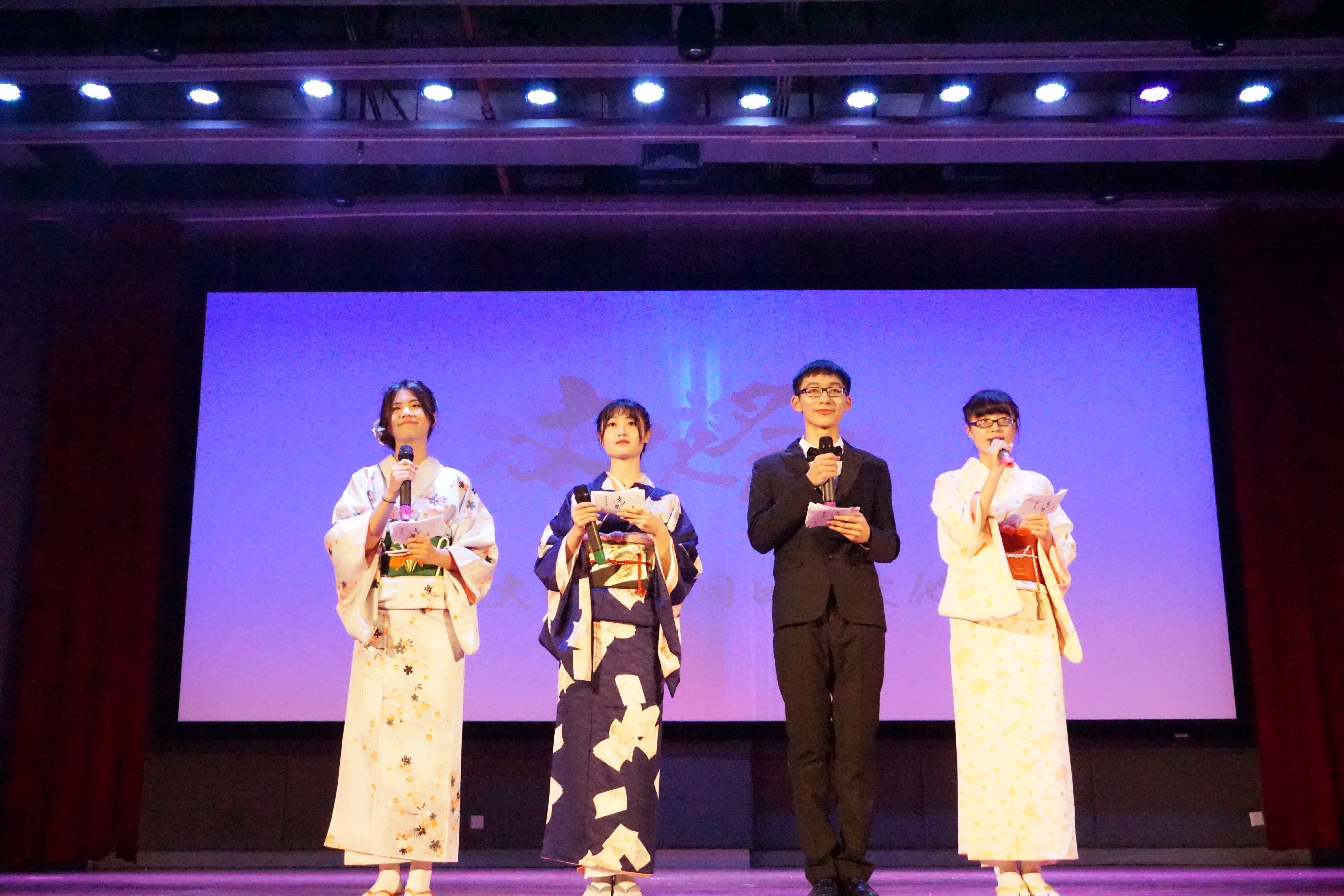 团委书记林昕老师、日语系林涵老师、何美玲老师、金玉花老师和外籍教师黑冈老师莅临本场晚会。